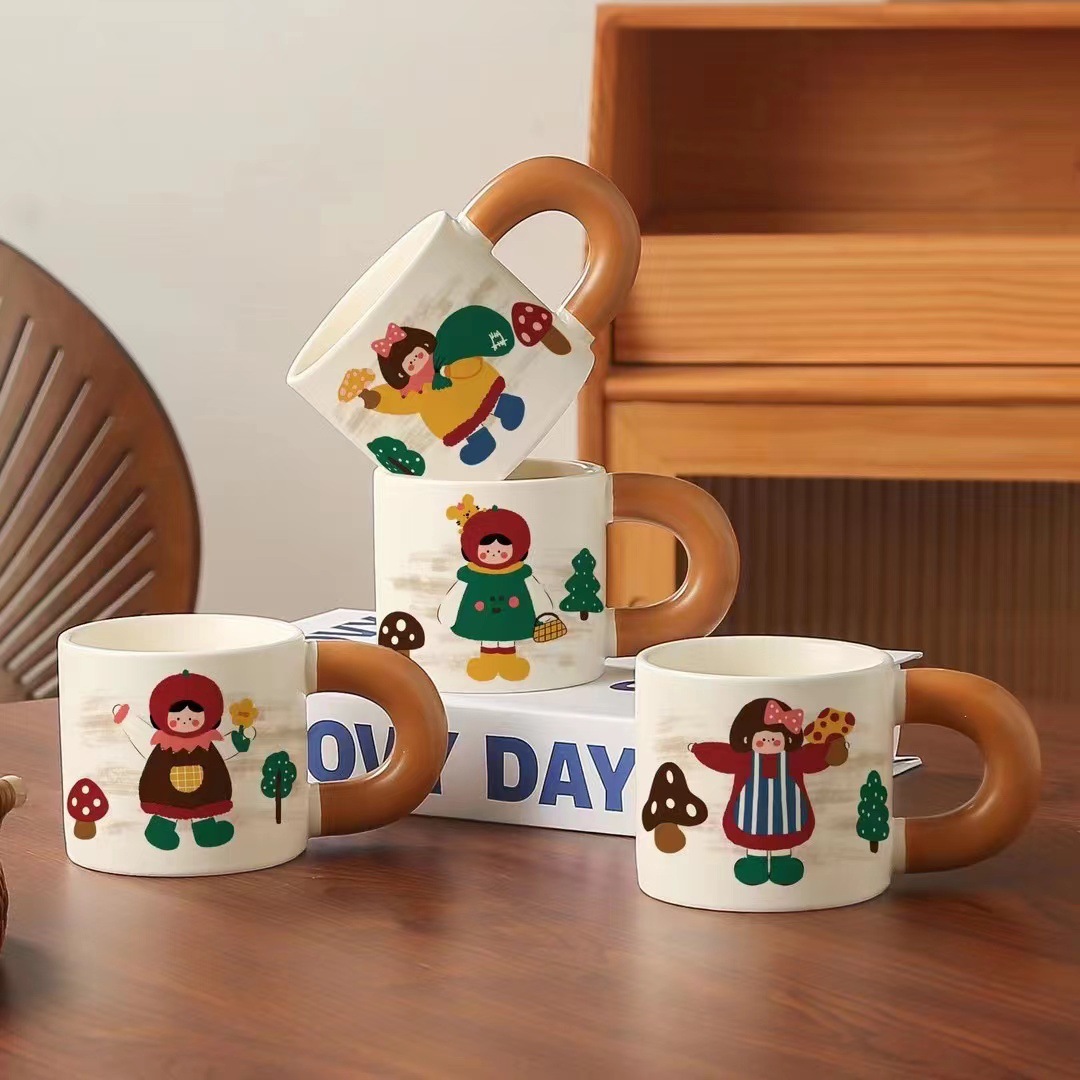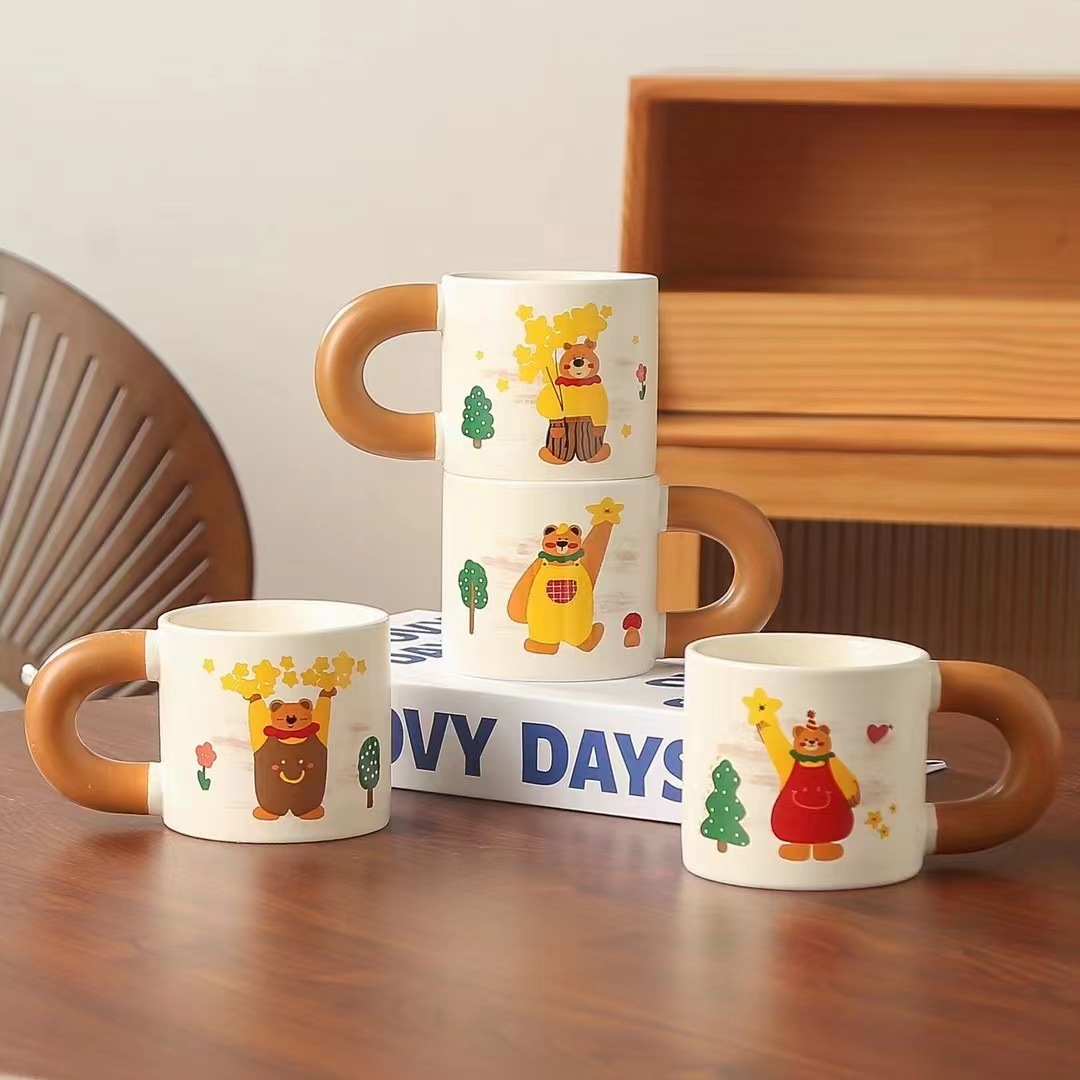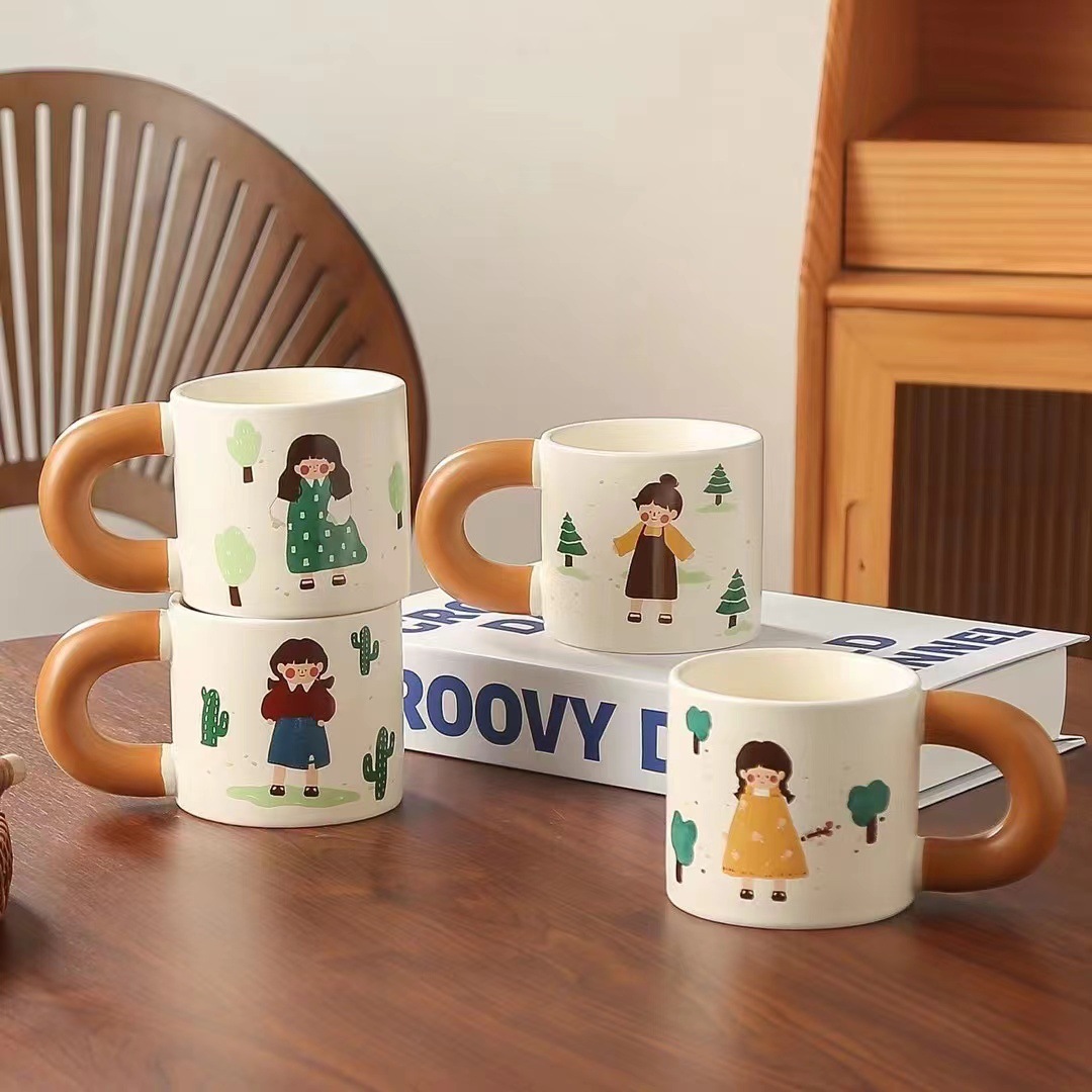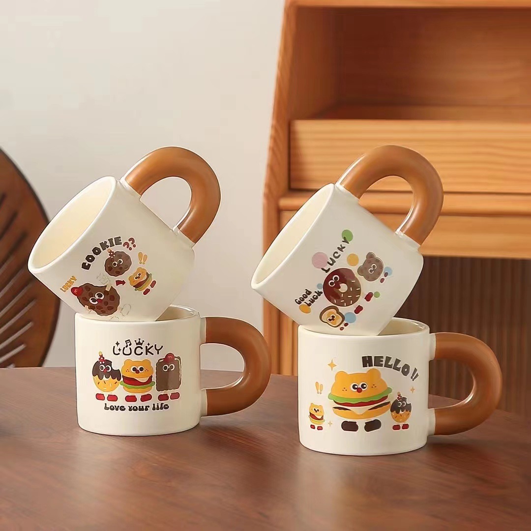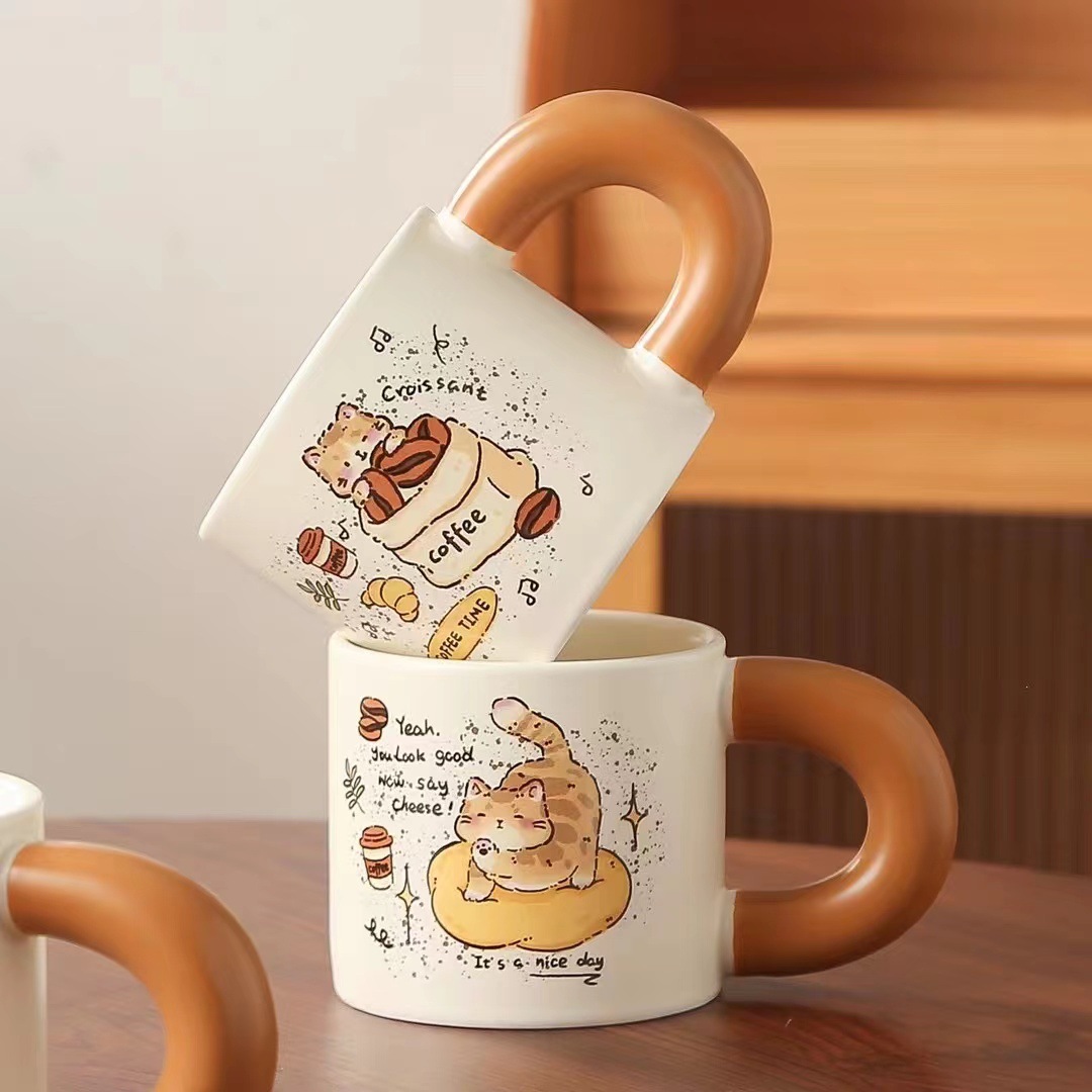 창조적 인 만화 커피 야옹 세라믹 컵 실용적인 큰 손잡이 물 컵 오프닝 활동 손 선물 찻잔 도매