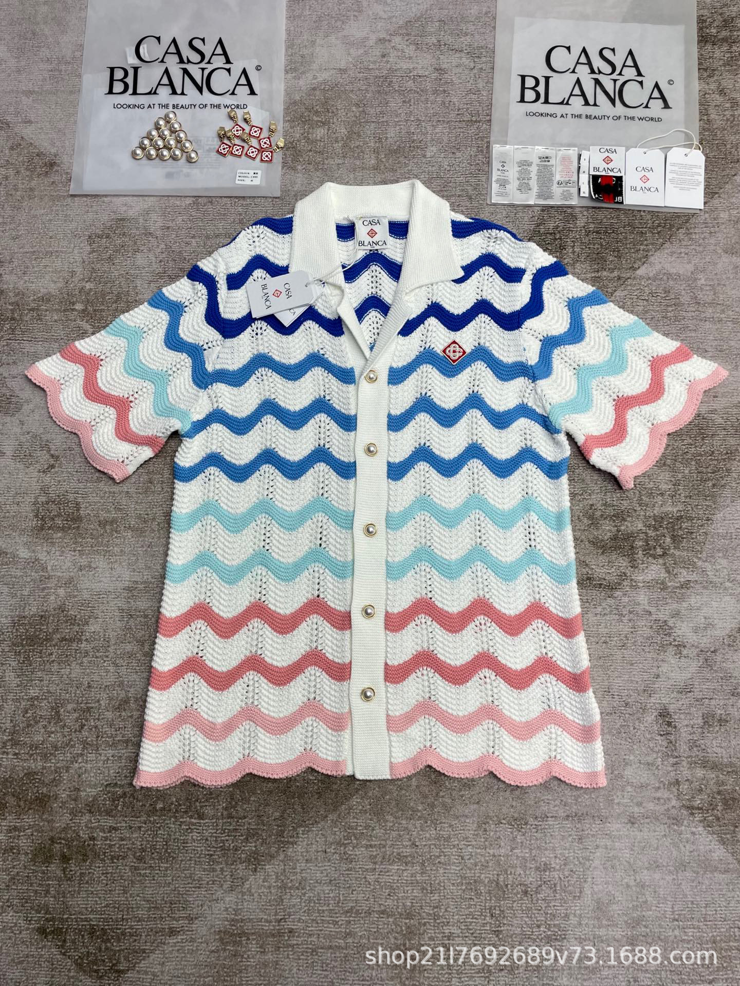 CASABLANCA 스웨터 크루 넥 스웨터 반바지 자카드 카디건 독립 역 국경 간 전자 상거래 대외 무역스토어 가기