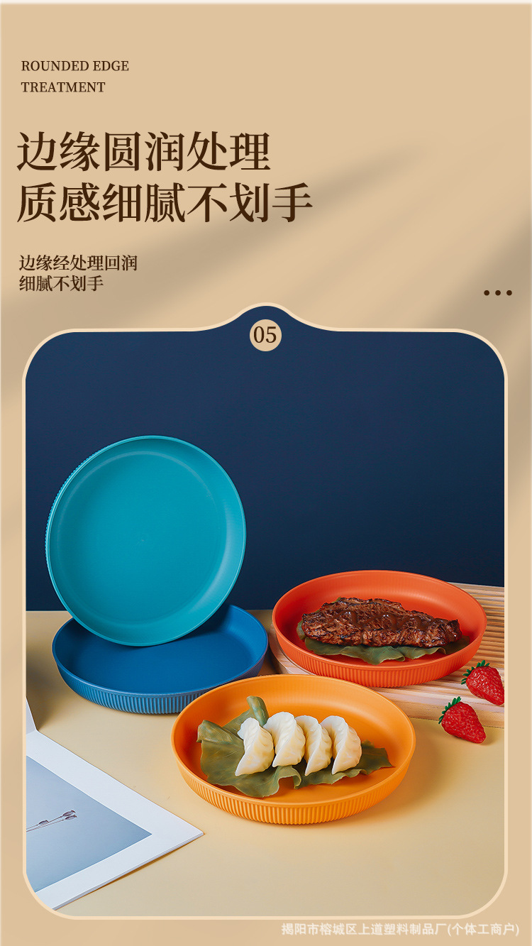 밀짚 PP 접시 20cm 원형 접시, 내구성이 뛰어나고 아름다운 디자인, 호텔용 접시, 심플한 가정용 접시, 과일 접시