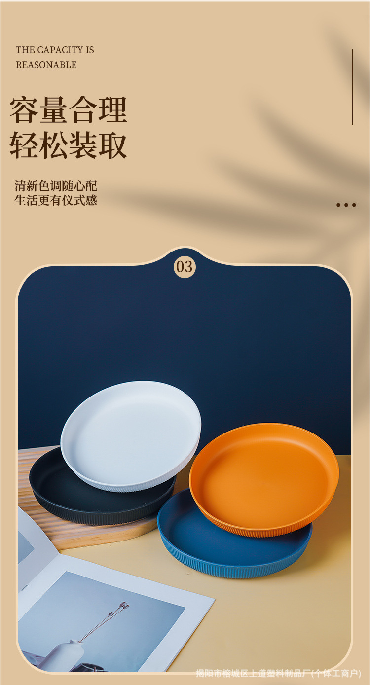 밀짚 PP 접시 20cm 원형 접시, 내구성이 뛰어나고 아름다운 디자인, 호텔용 접시, 심플한 가정용 접시, 과일 접시스토어 가기