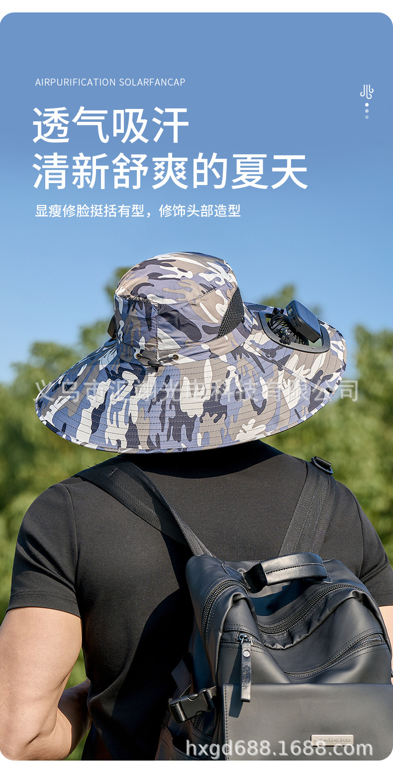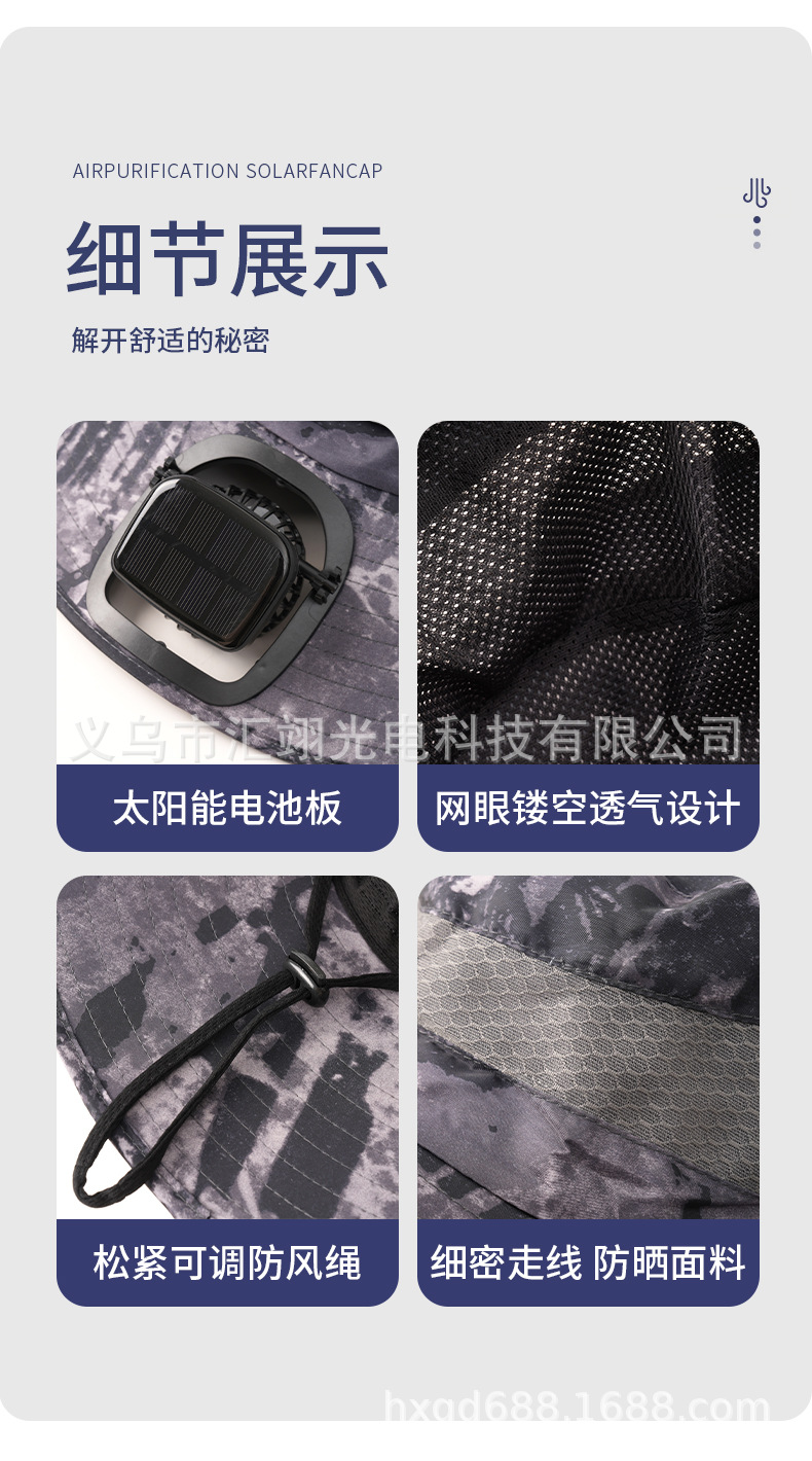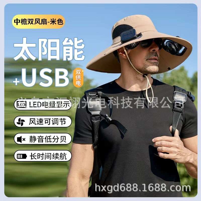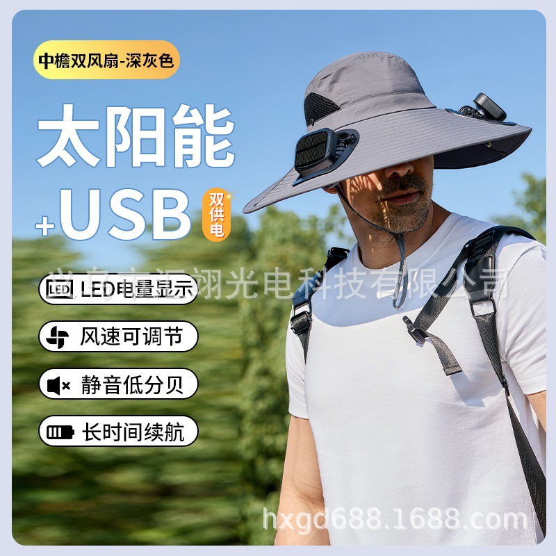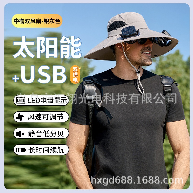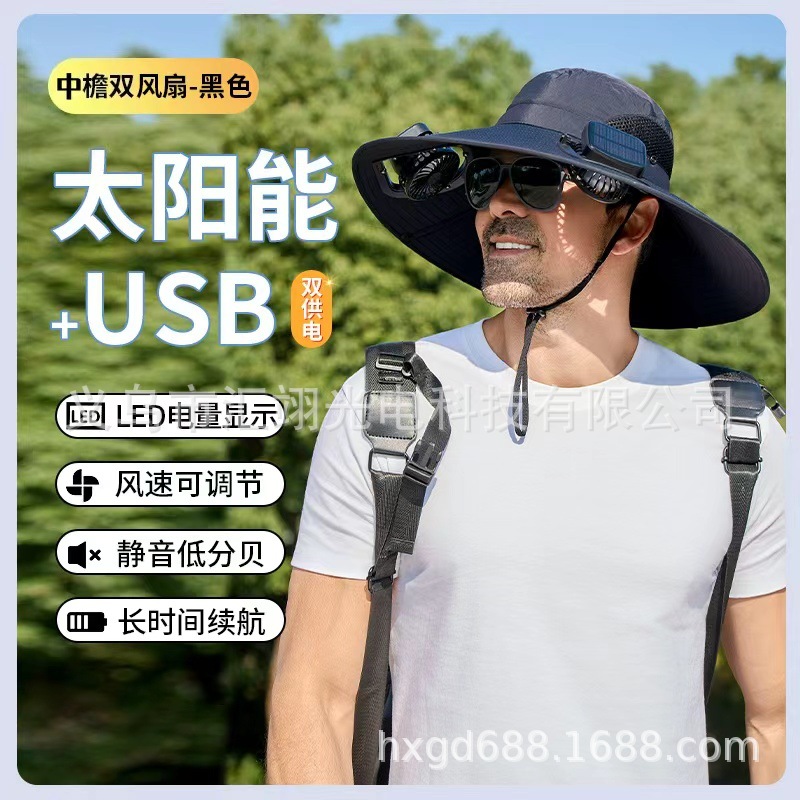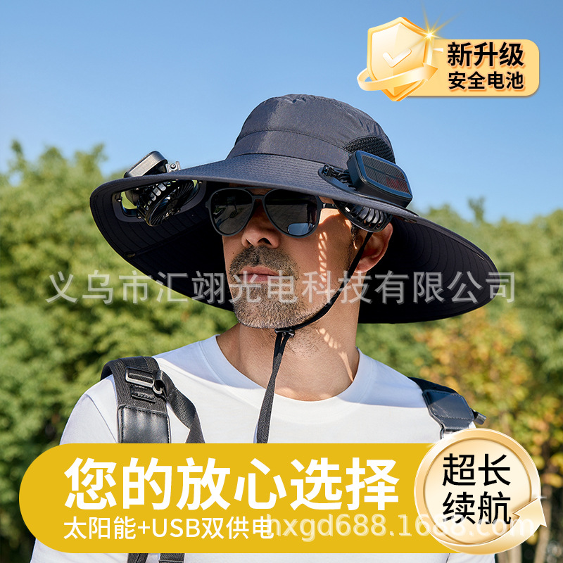 탈부착 가능한 태양광 충전 팬 내장형 챙이 넓은 모자 여름 야외용 차양 모자 남성용 등산 낚시 모자