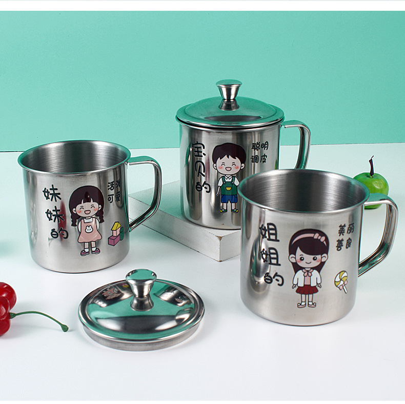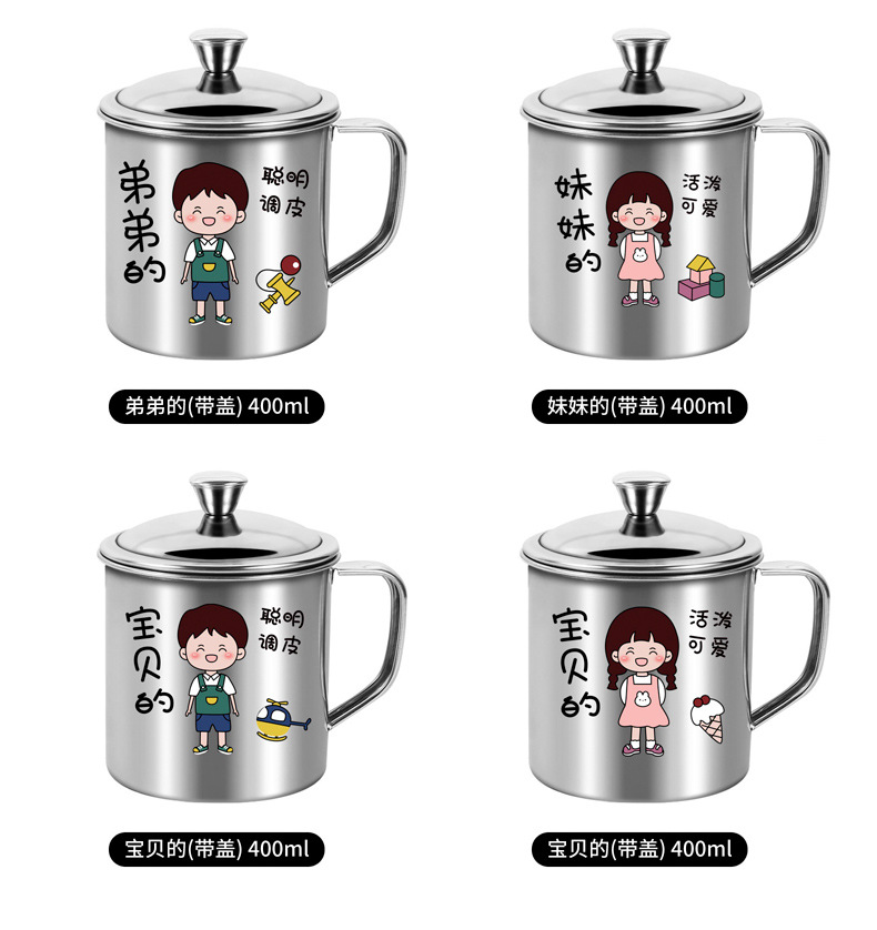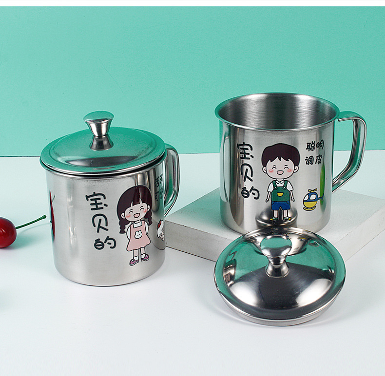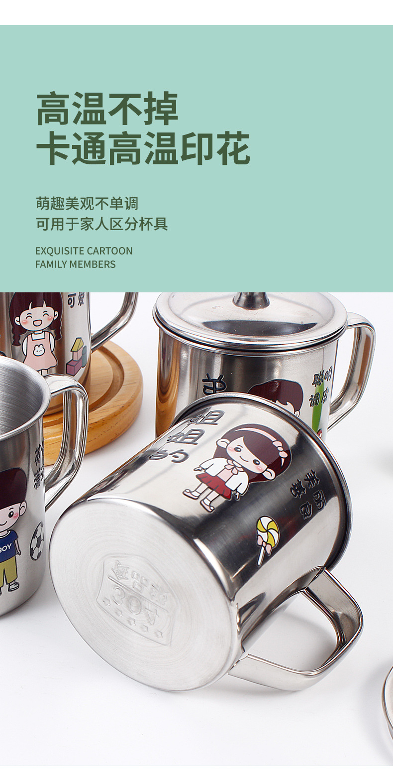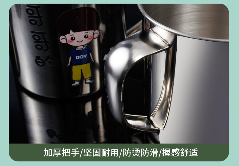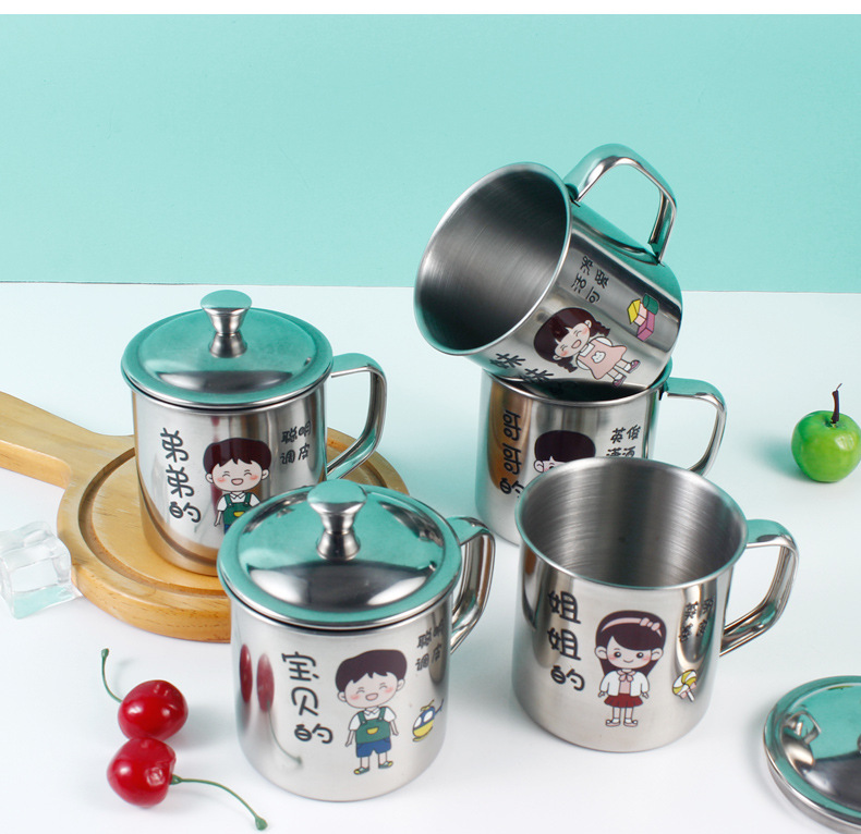어린이 부모-어린이 가정 304 식품 학년 스테인레스 스틸 가글 만화 유치원 마시는 우유 드롭 방지 컵
