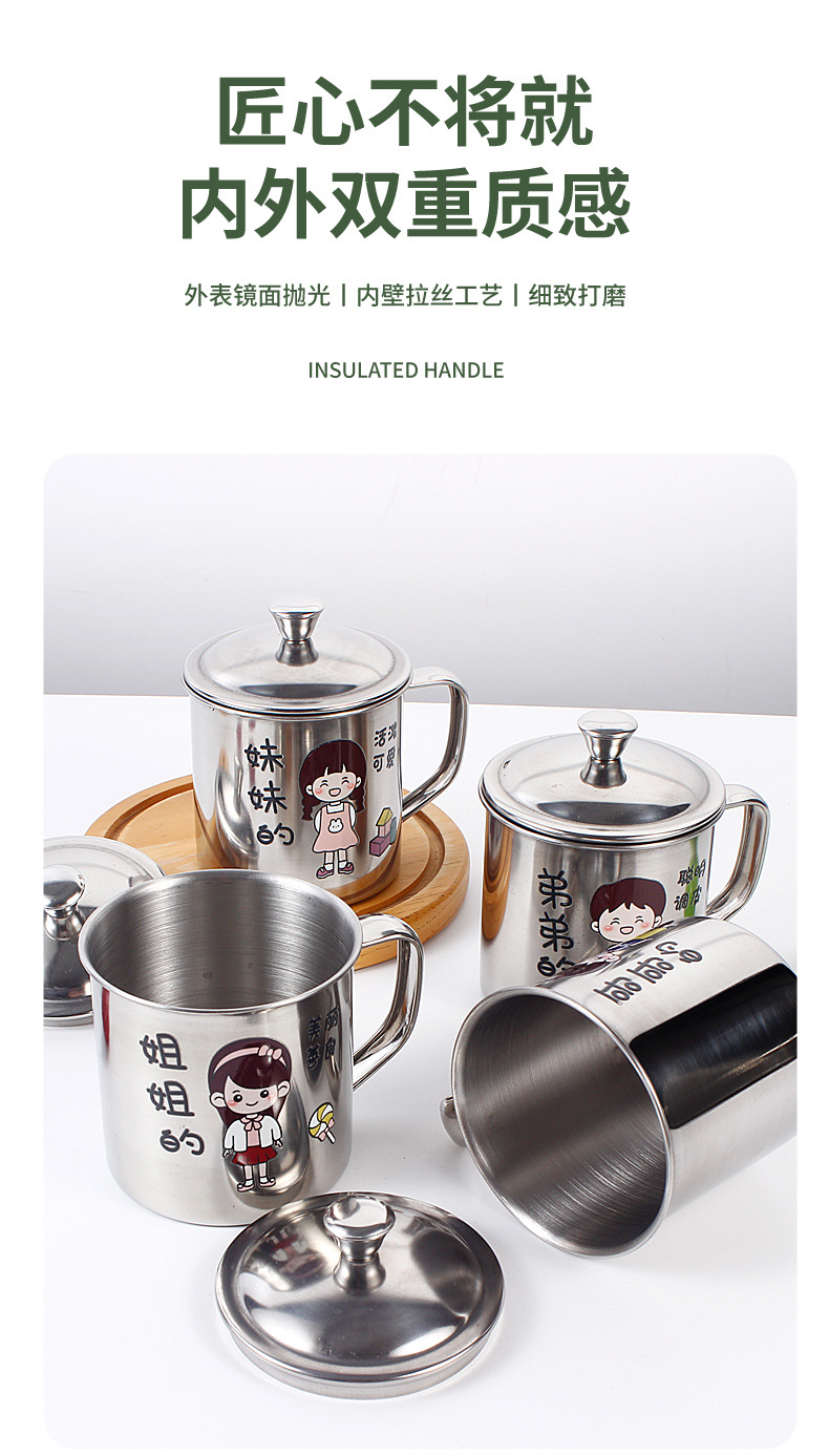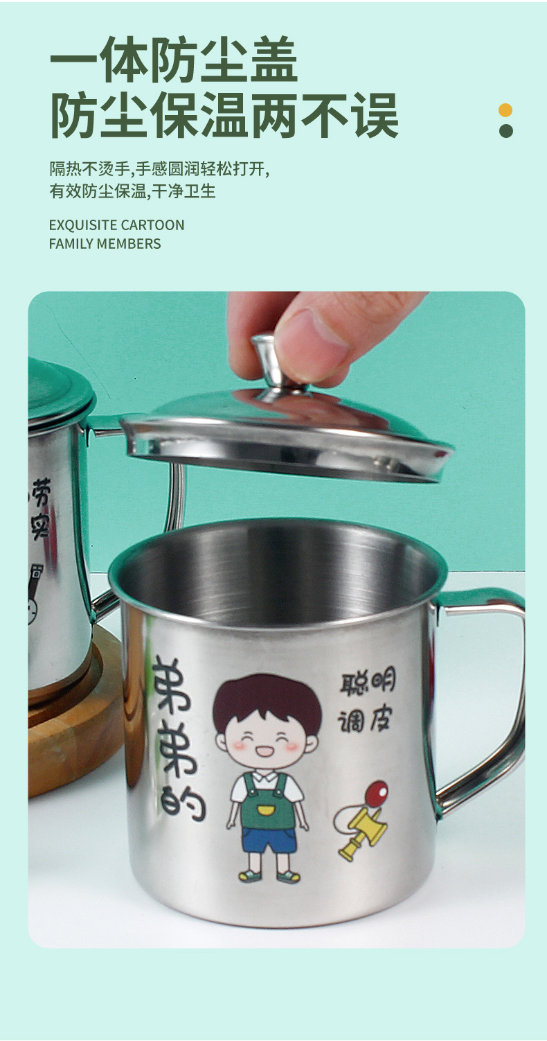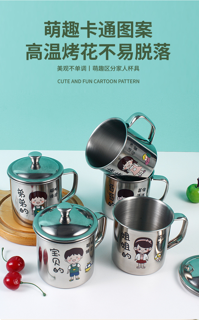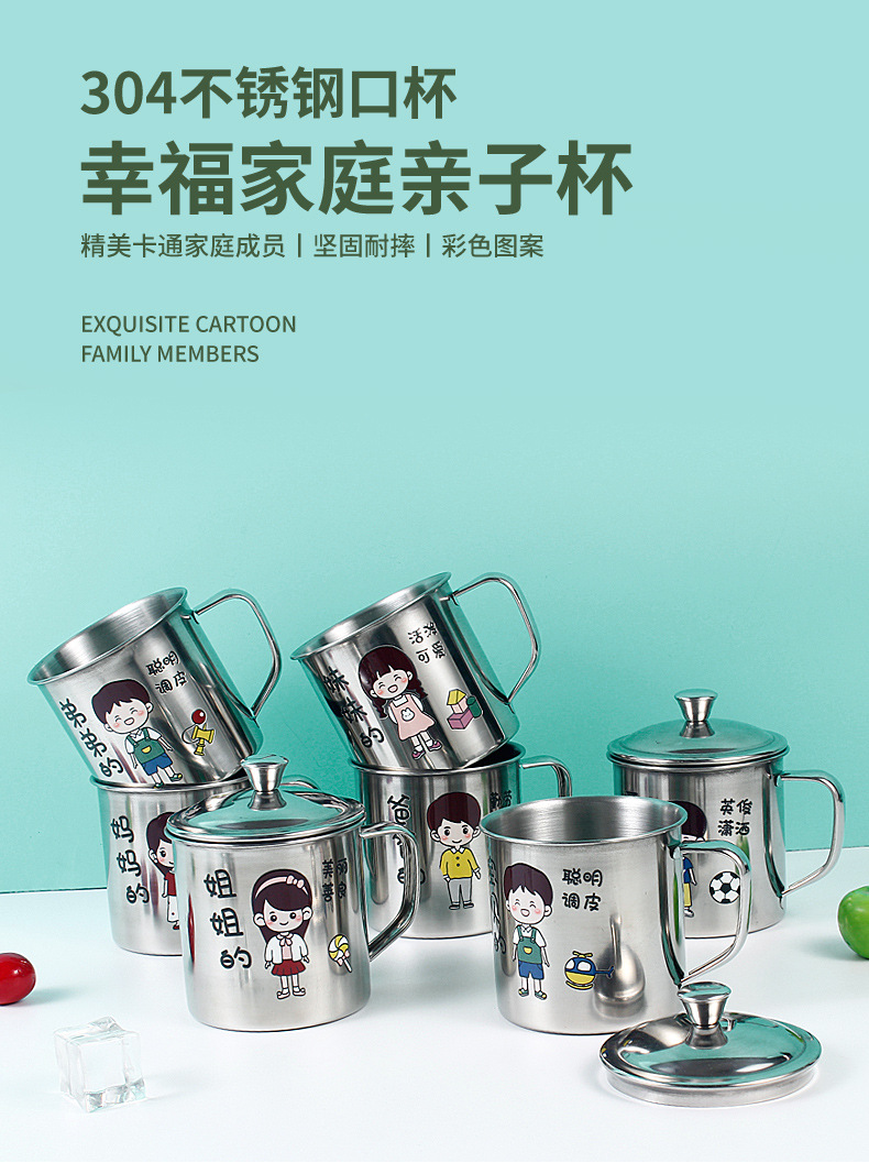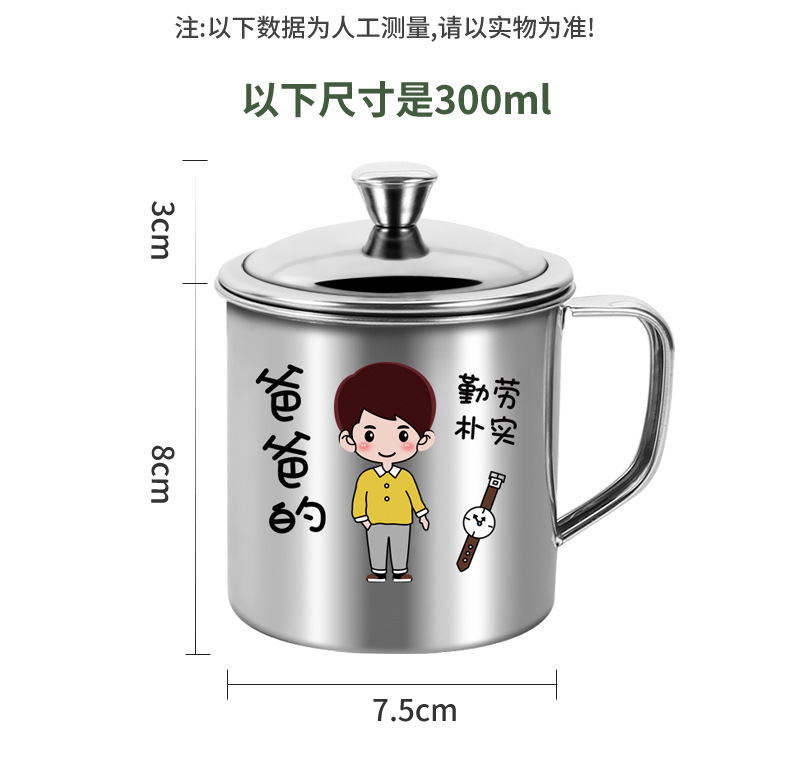 어린이 부모-어린이 가정 304 식품 학년 스테인레스 스틸 가글 만화 유치원 마시는 우유 드롭 방지 컵
