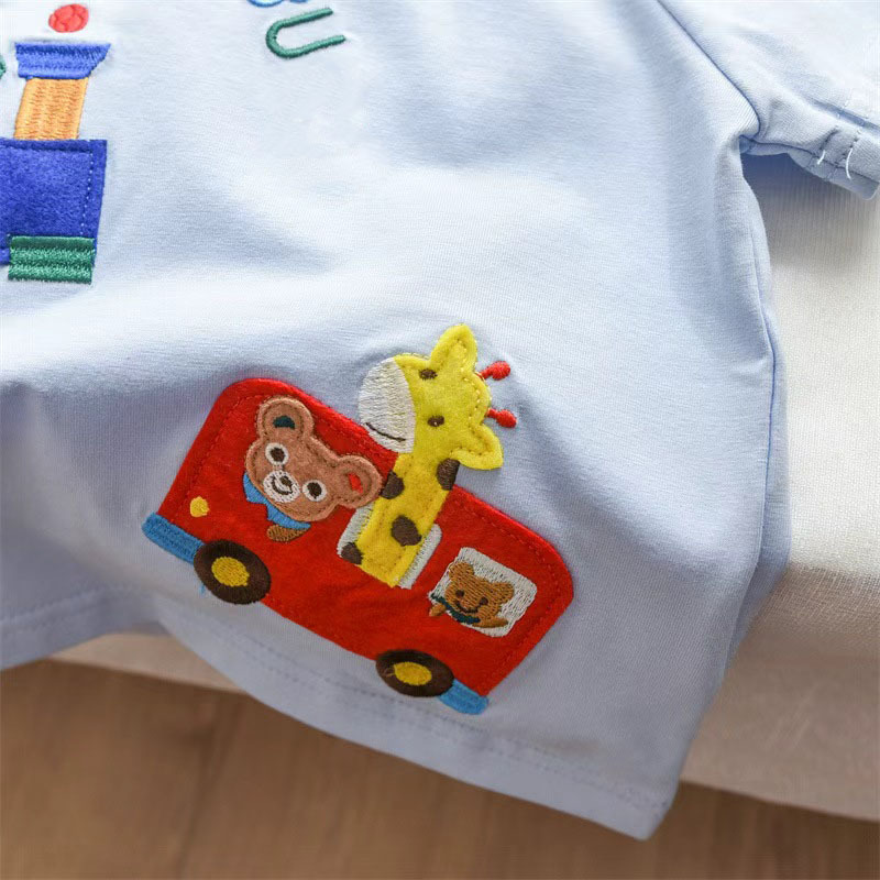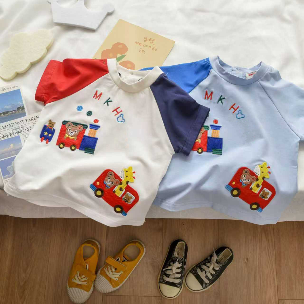 Jimo 일본 아동복 반팔 도매 24 여름 소년 소녀 곰 자동차 라글란 슬리브 캐주얼 티셔츠 2750스토어 가기