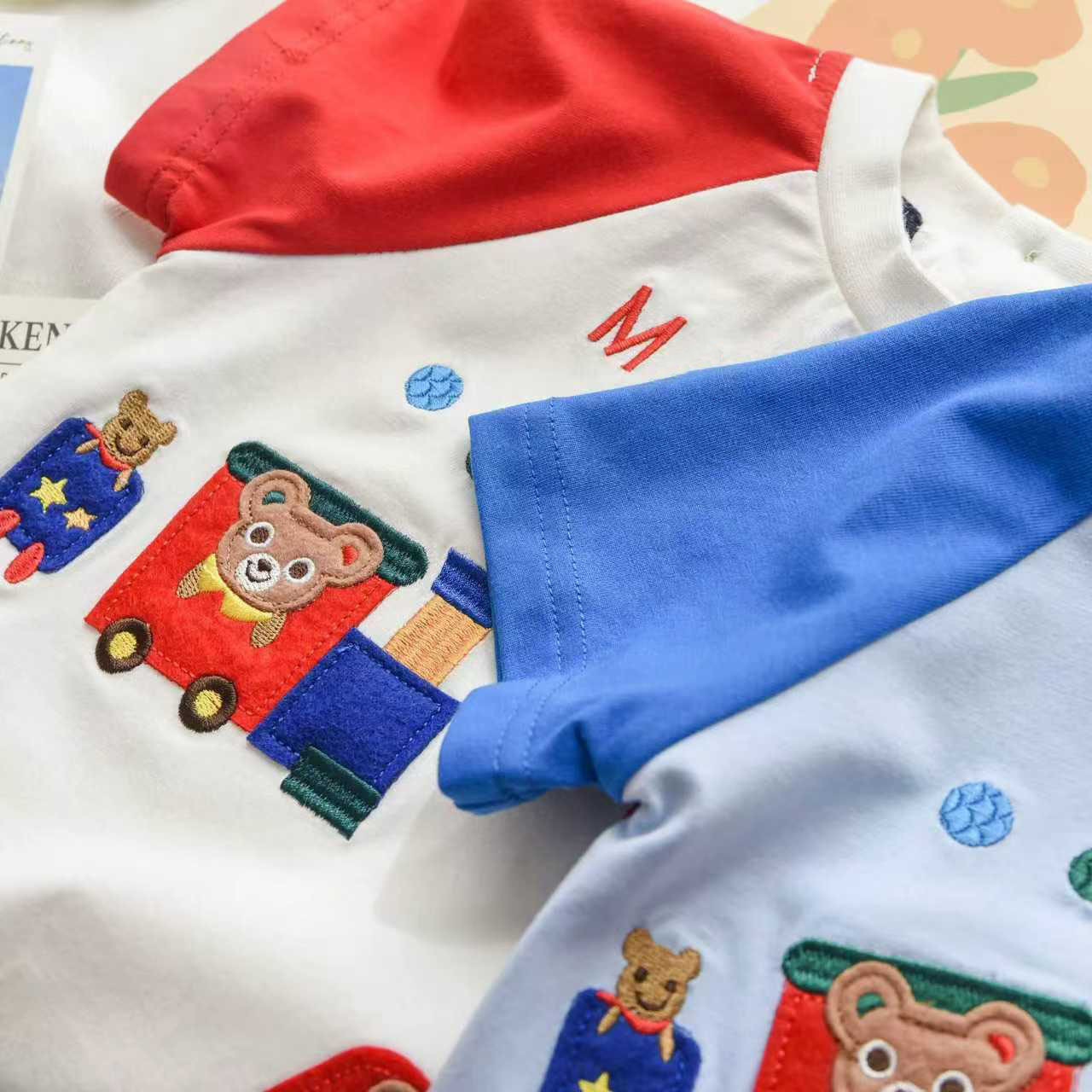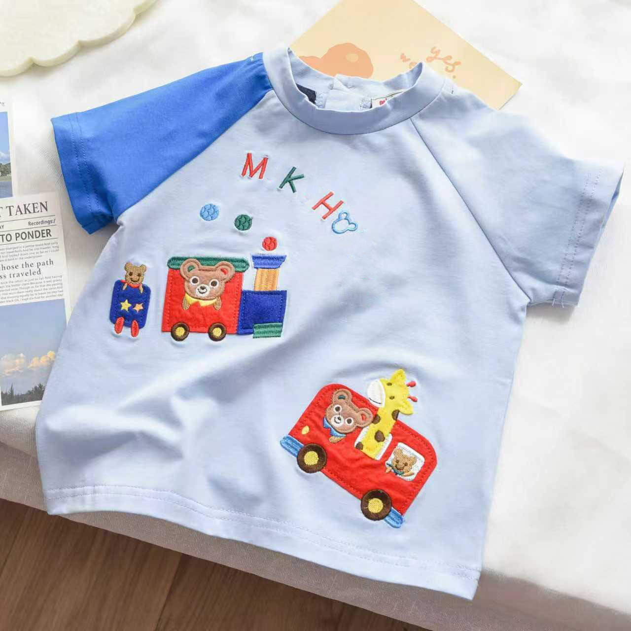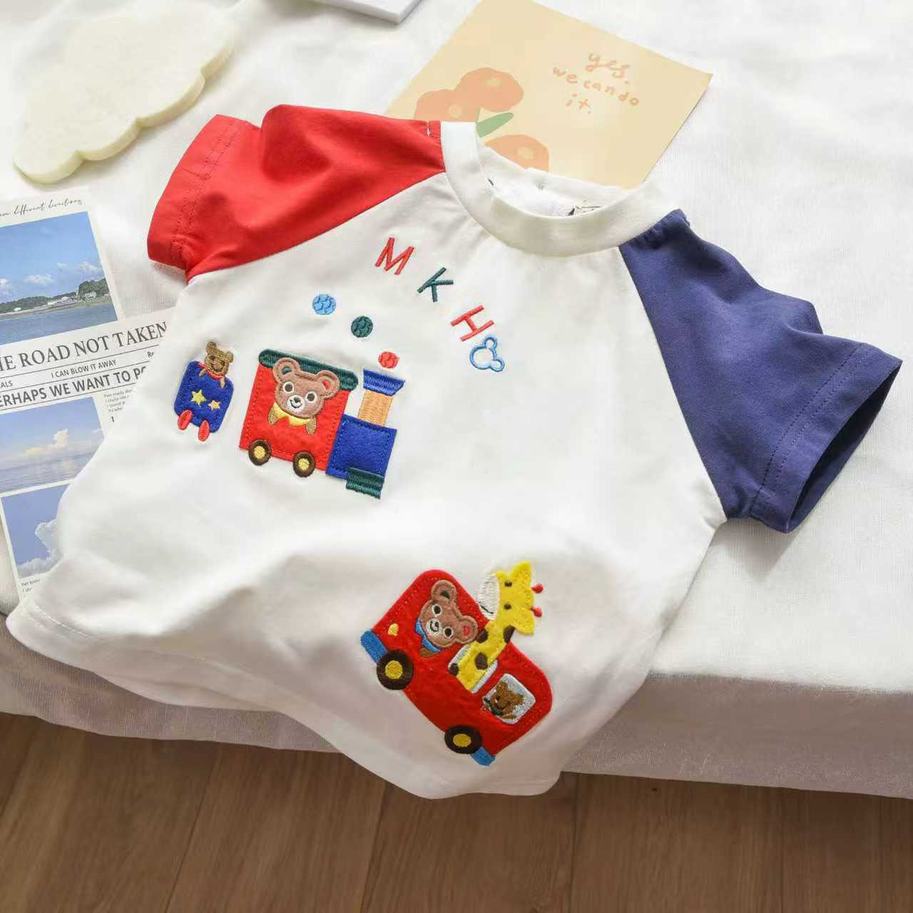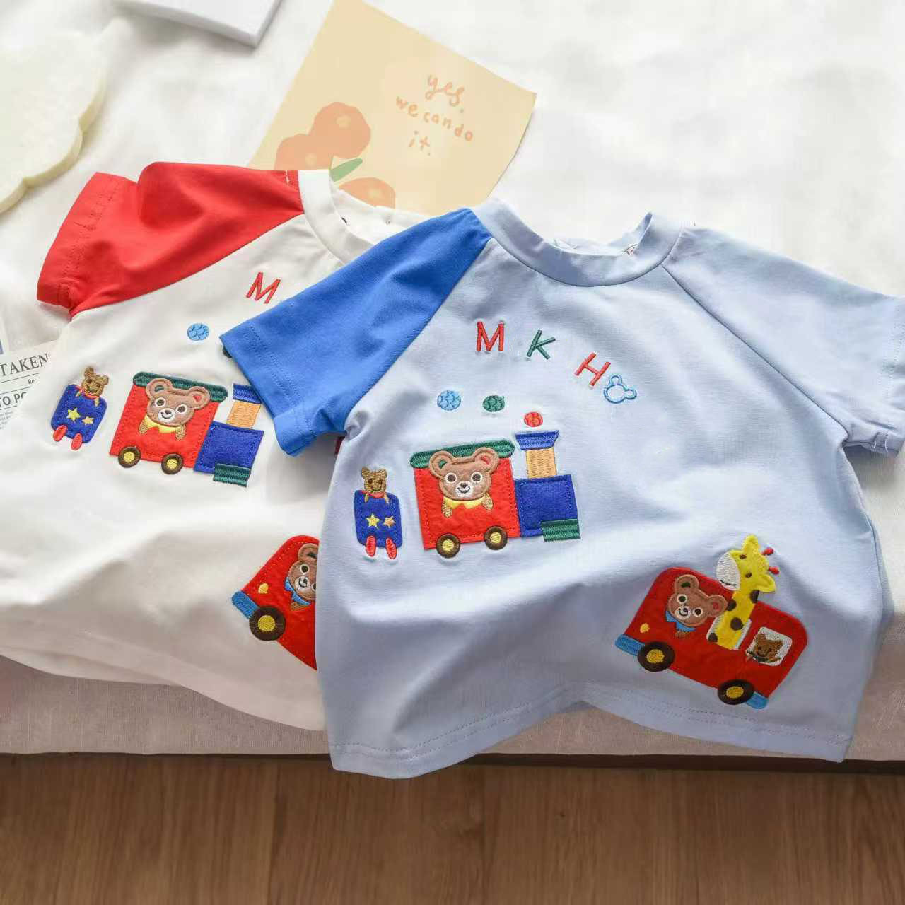 Jimo 일본 아동복 반팔 도매 24 여름 소년 소녀 곰 자동차 라글란 슬리브 캐주얼 티셔츠 2750