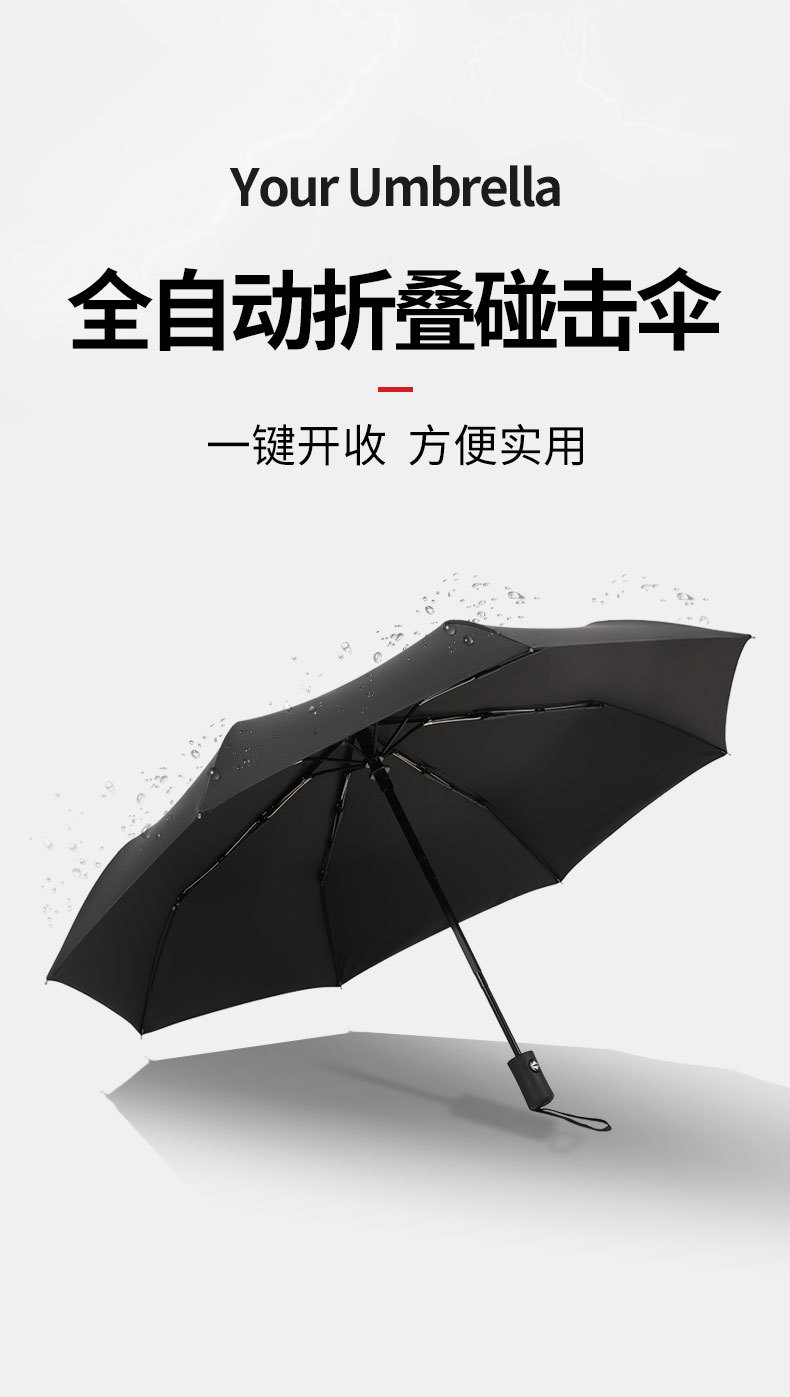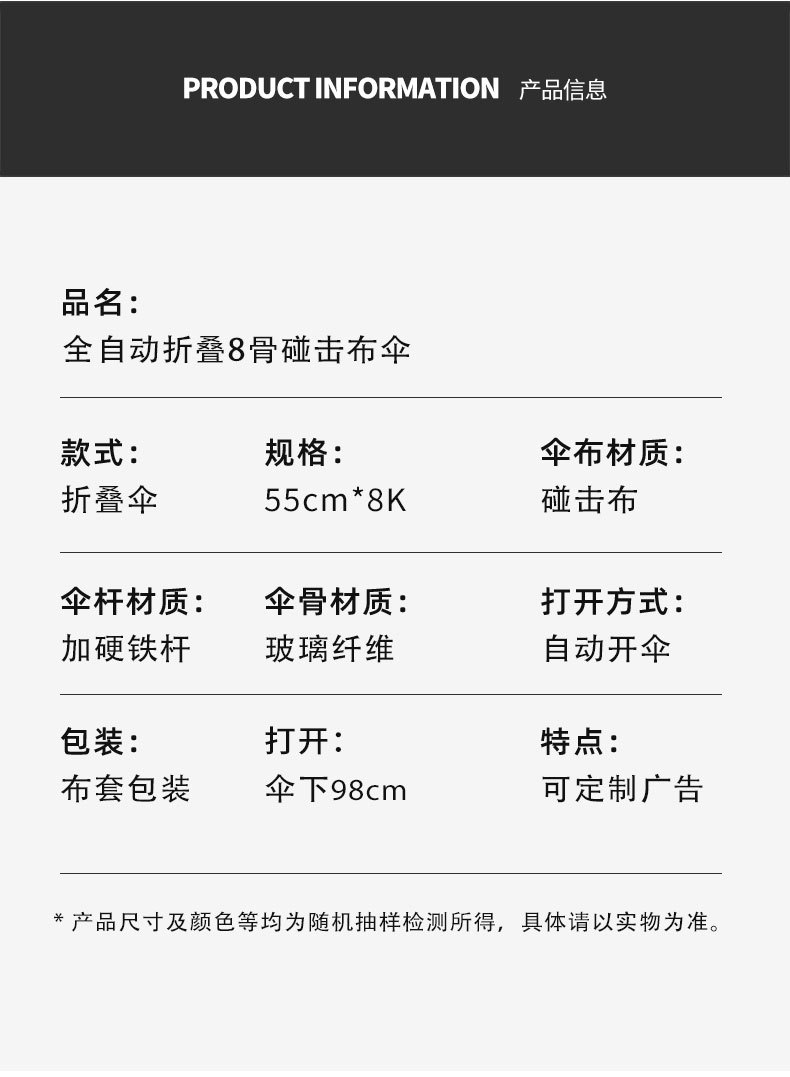 • 완전 자동 접이식 8 뼈 충격 천 블랙