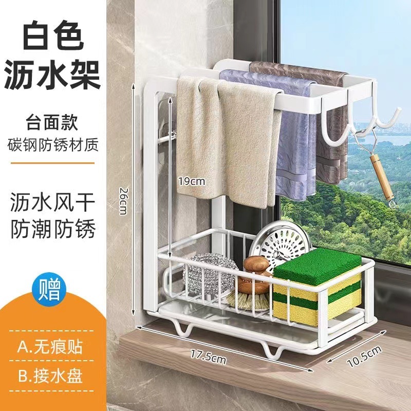 래그 랙 주방 스토리지 랙 펀치 프리 스토리지 랙 벽에 장착 된 조미료 랙 가정용 배수 바구니 싱크 유물스토어 가기