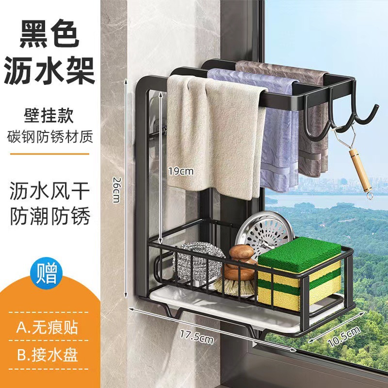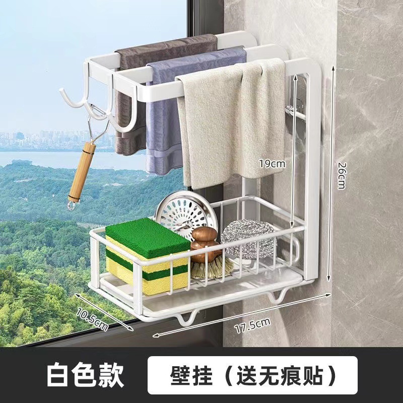 래그 랙 주방 스토리지 랙 펀치 프리 스토리지 랙 벽에 장착 된 조미료 랙 가정용 배수 바구니 싱크 유물