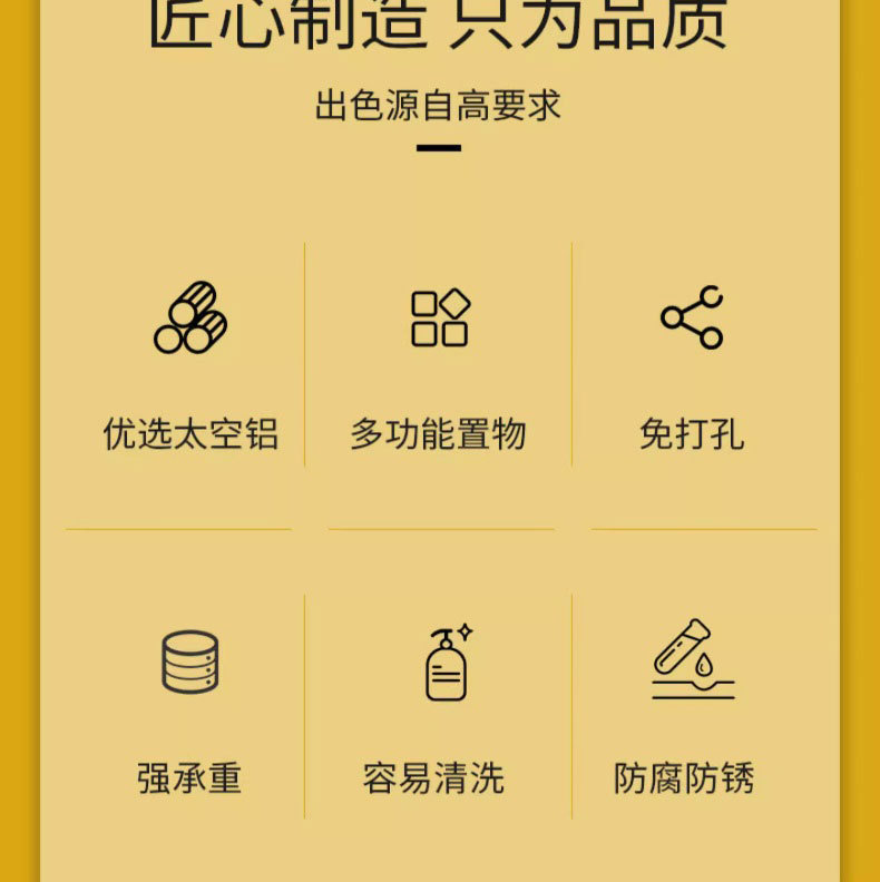 두꺼운 공간 알루미늄 욕실 보관 랙 펀치없는 벽 장착 화장품 보관 주방 조미료 선반스토어 가기