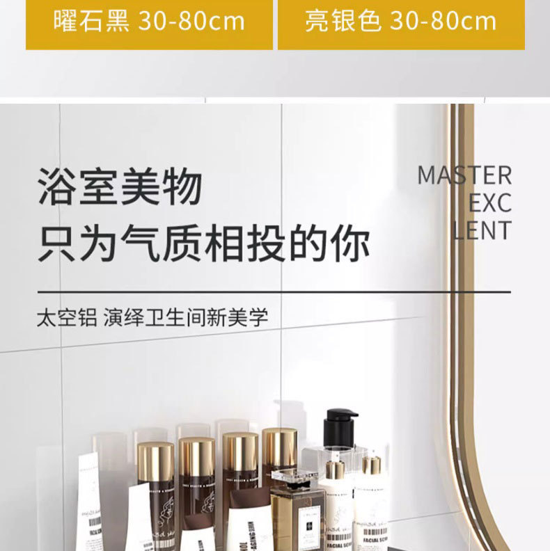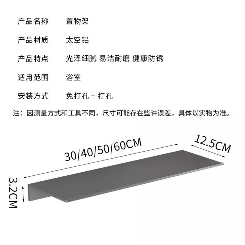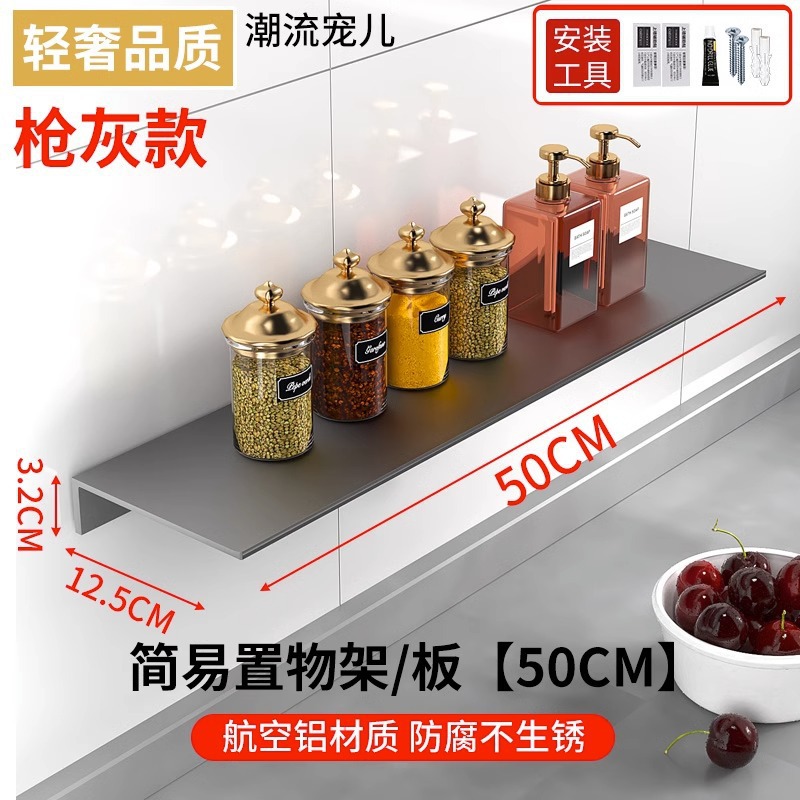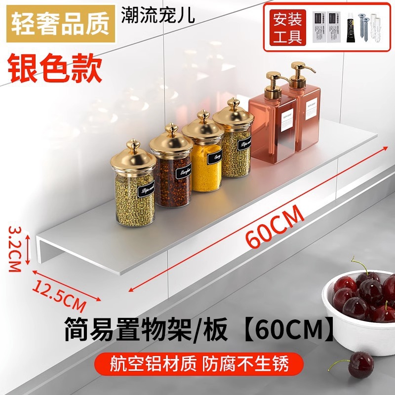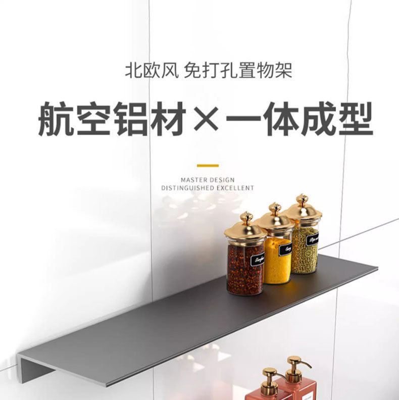 두꺼운 공간 알루미늄 욕실 보관 랙 펀치없는 벽 장착 화장품 보관 주방 조미료 선반