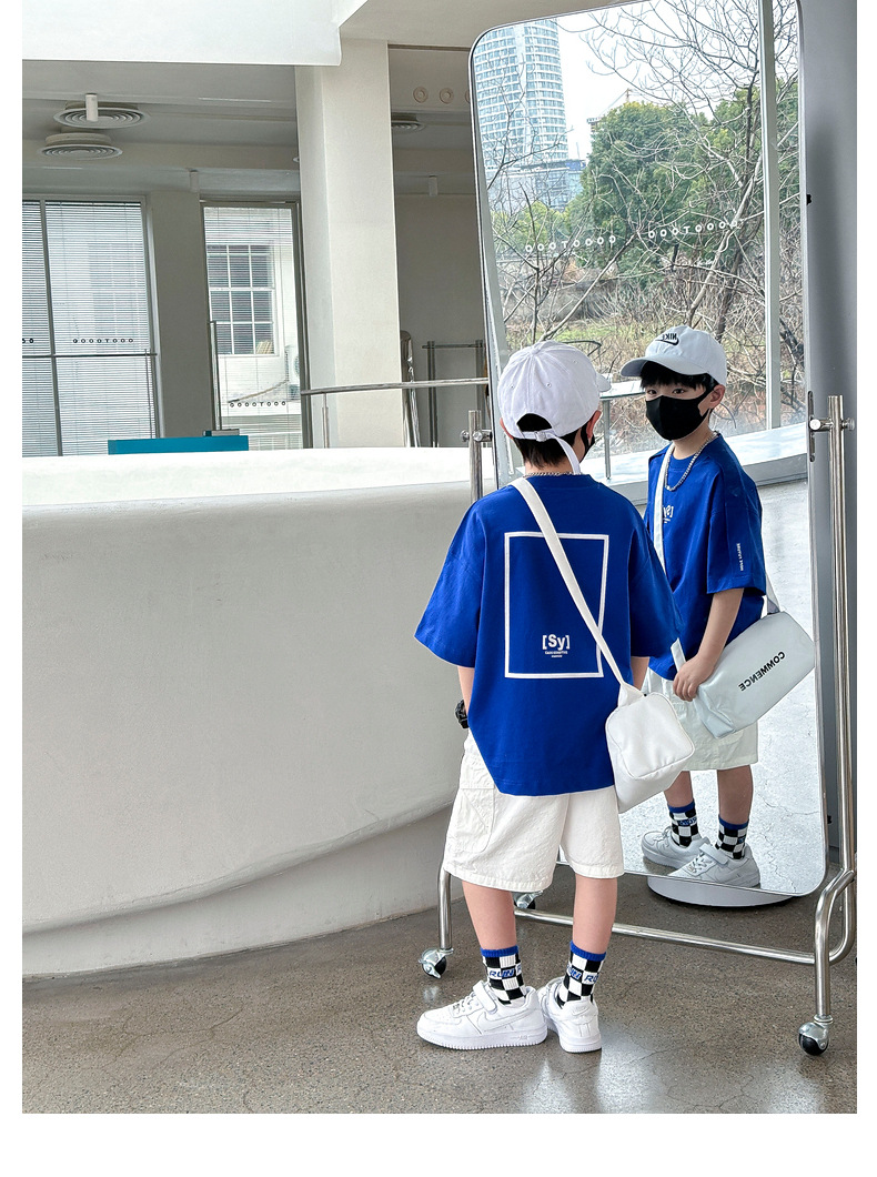 호주지리 아동복 2025 여름 순면 남아 티셔츠 팬더 원원 아동 반팔 상의 도매 유아복