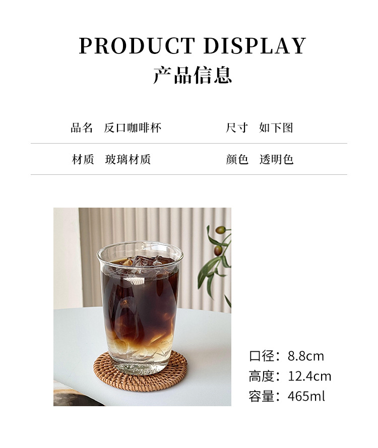 아이스 아메리칸 라떼 커피 컵 스타일 붕규산 유리 간단한 물 컵 우유 컵 음료 컵 주스 컵스토어 가기