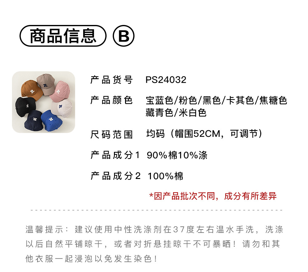 방선택 아동용 모자 남아 여아 레터링 레터링 모자 스포츠 아기용 차양 야구 모자 PS24032스토어 가기