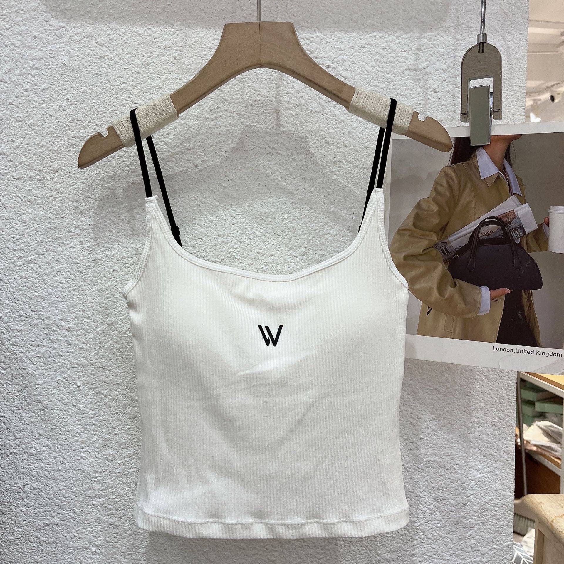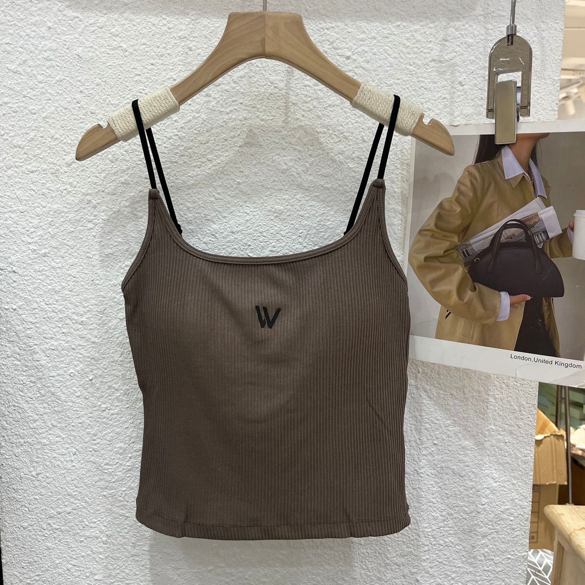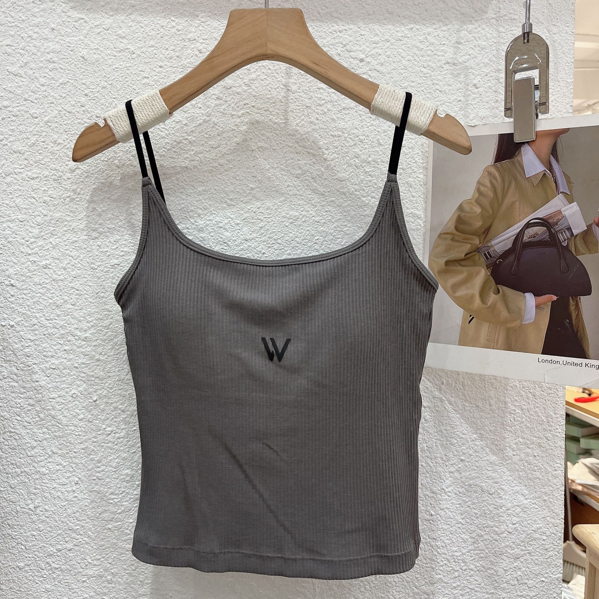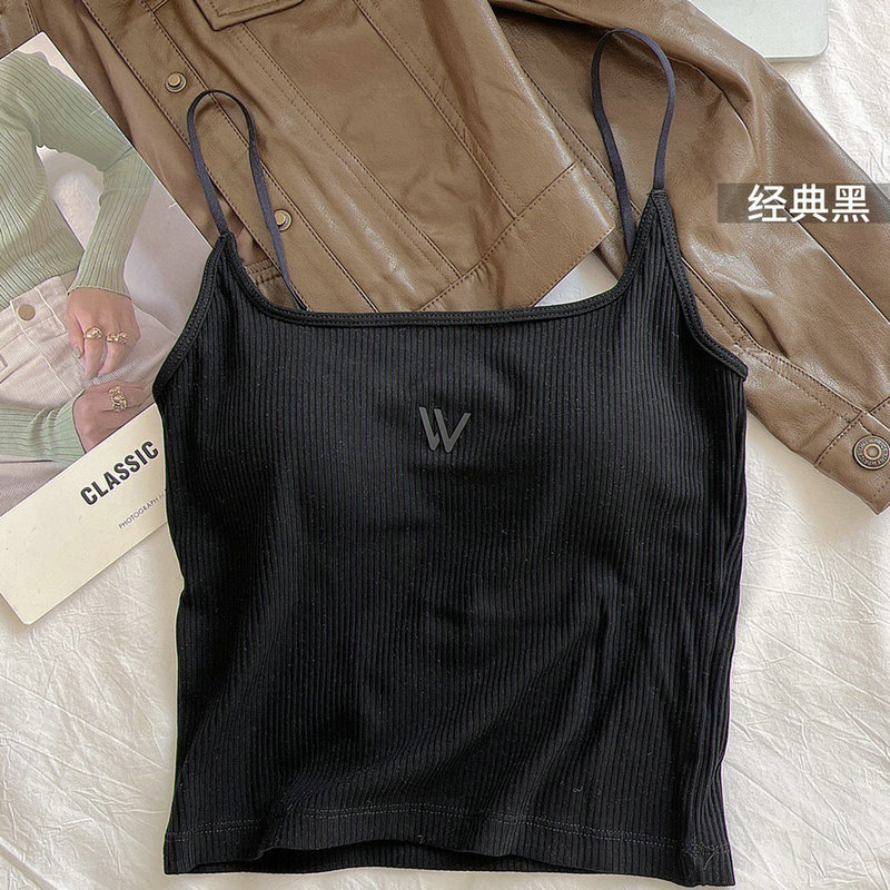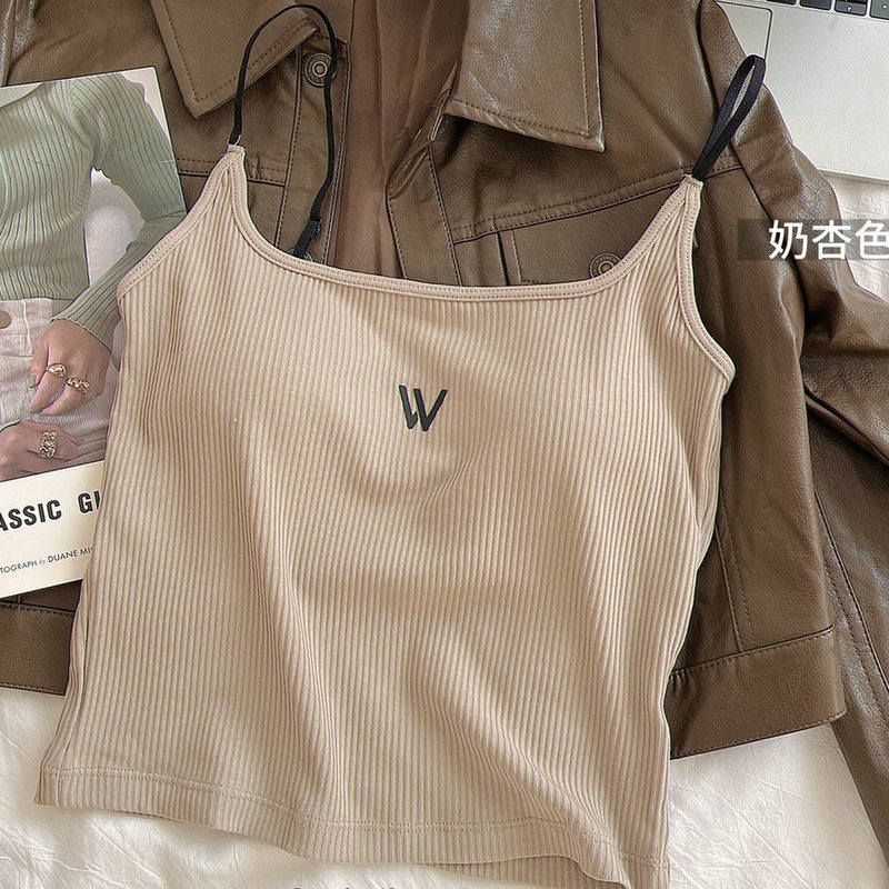 새로운 대비 컬러 실면 벨트 가슴 패드 조끼 캐미솔 바닥 슬림 탄성 캐미솔 여성의 내부 가슴 패드 조끼 여성스토어 가기