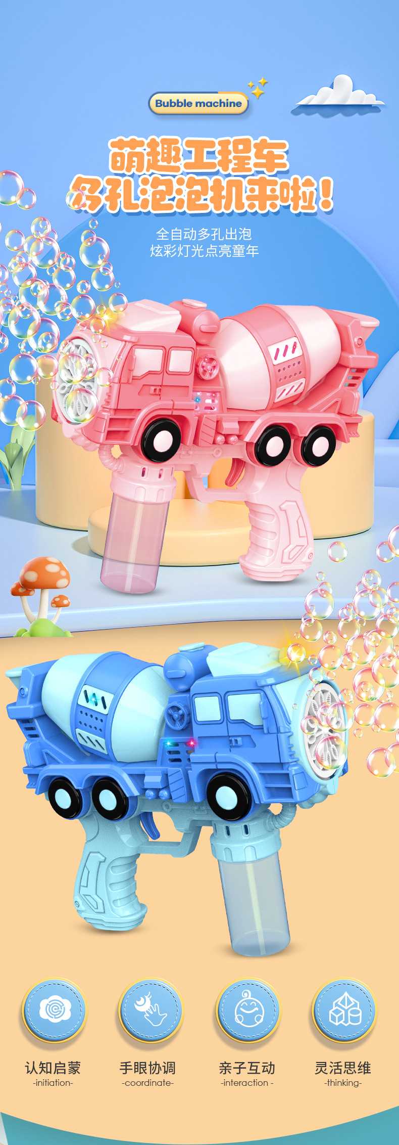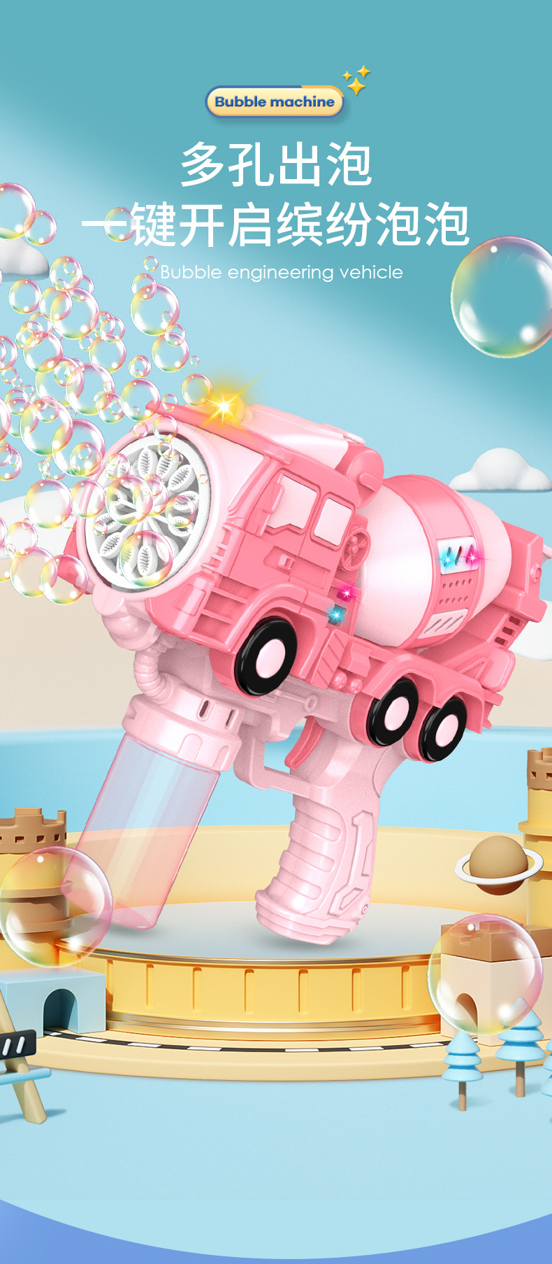 어린이 자동 공간 거품 총 전기 휴대용 총 재미 거품 부는 만화 모양 소년 소녀 거품 장난감스토어 가기