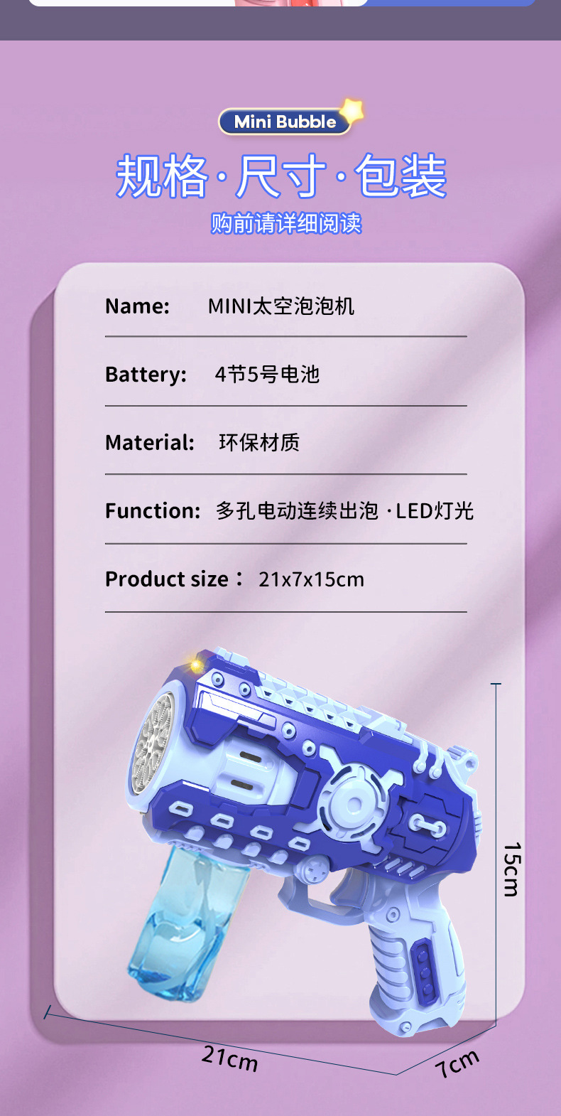 产品均没配五号电池。所有泡泡机玩具都是得用五号普通电池,自配电池的哈 。需要电池的话联系客服发链接拍电池一起发。