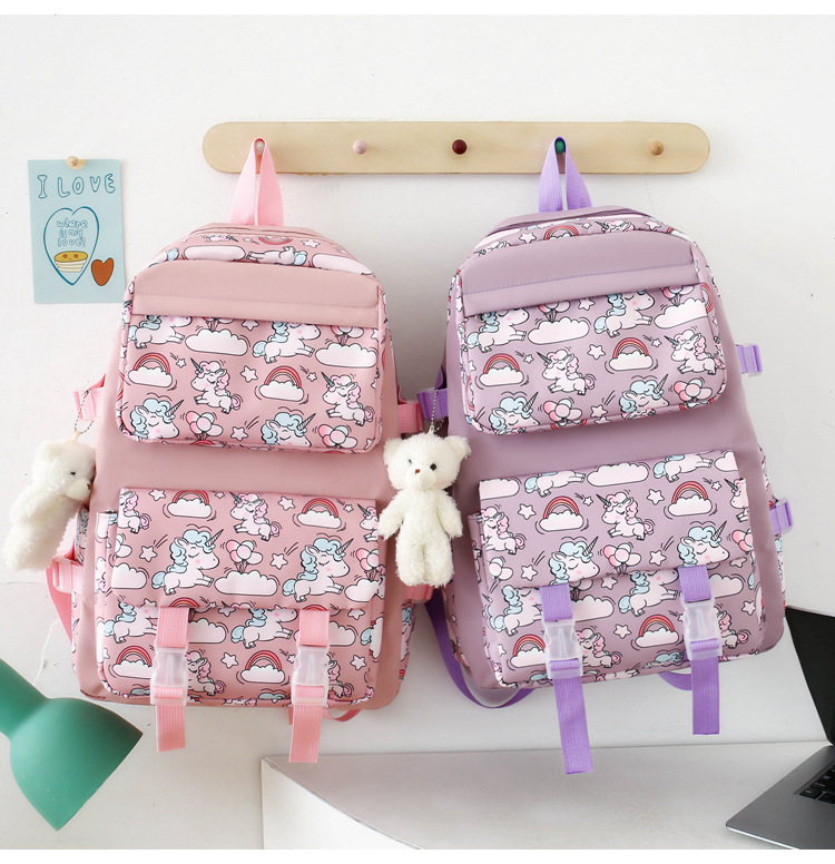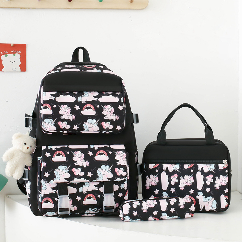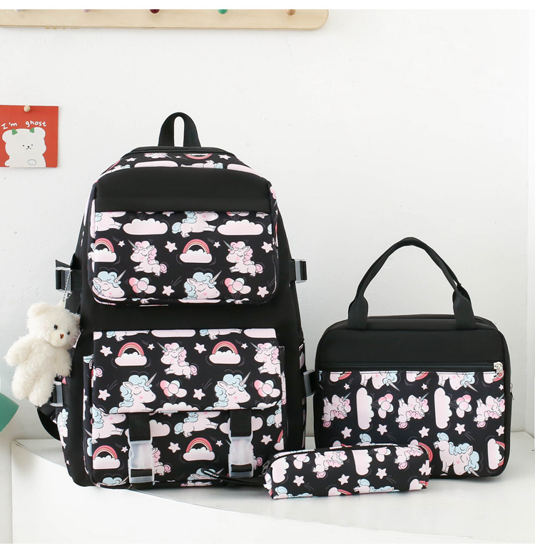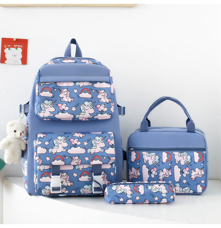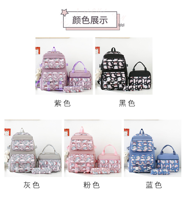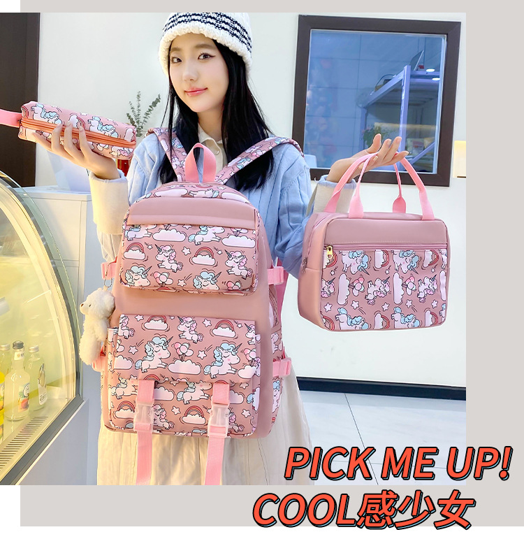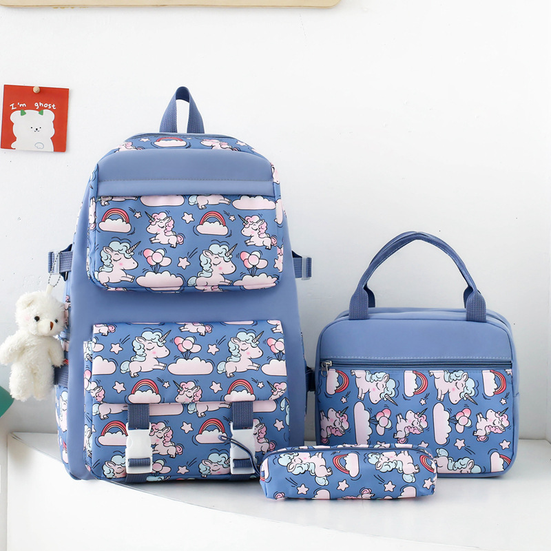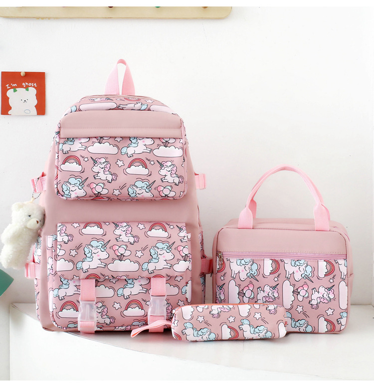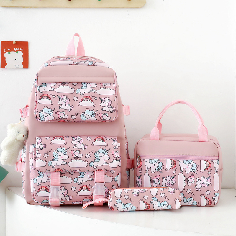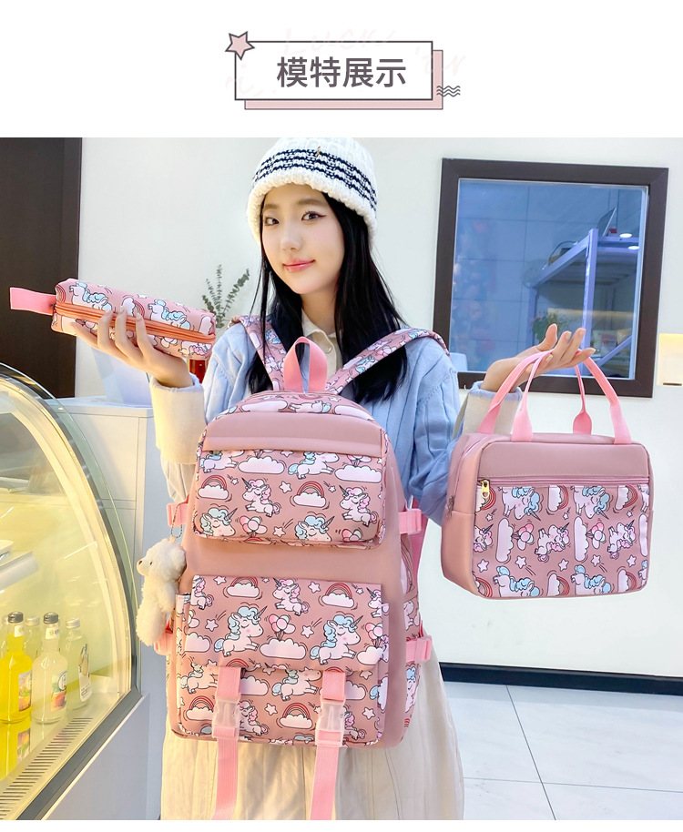 2025 새로운 경량 나일론 배낭 여성 귀여운 만화 3 피스 세트 초등 학생 대용량 학교 가방 도매