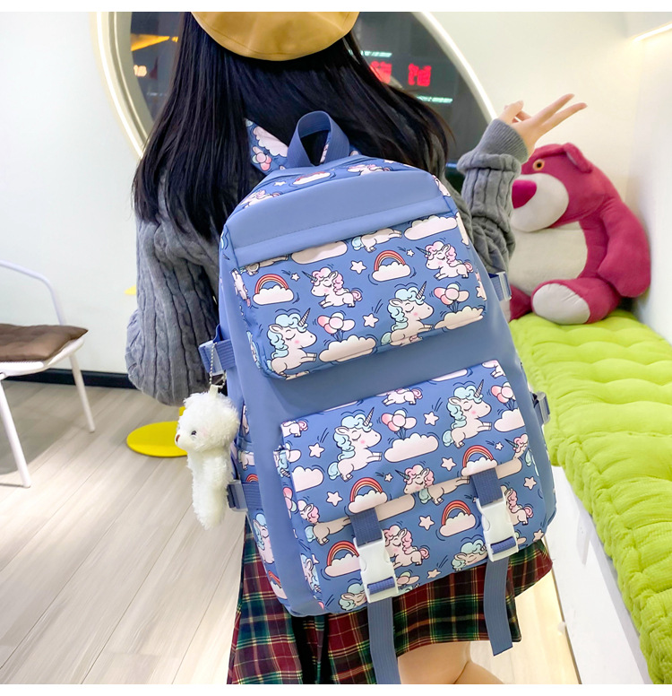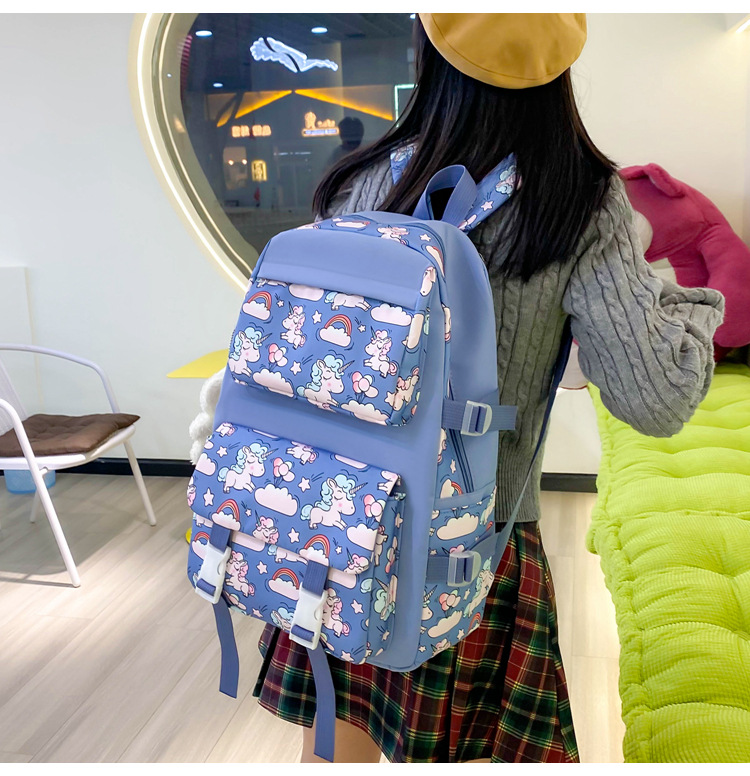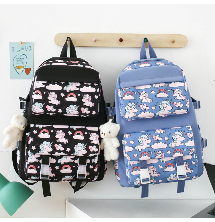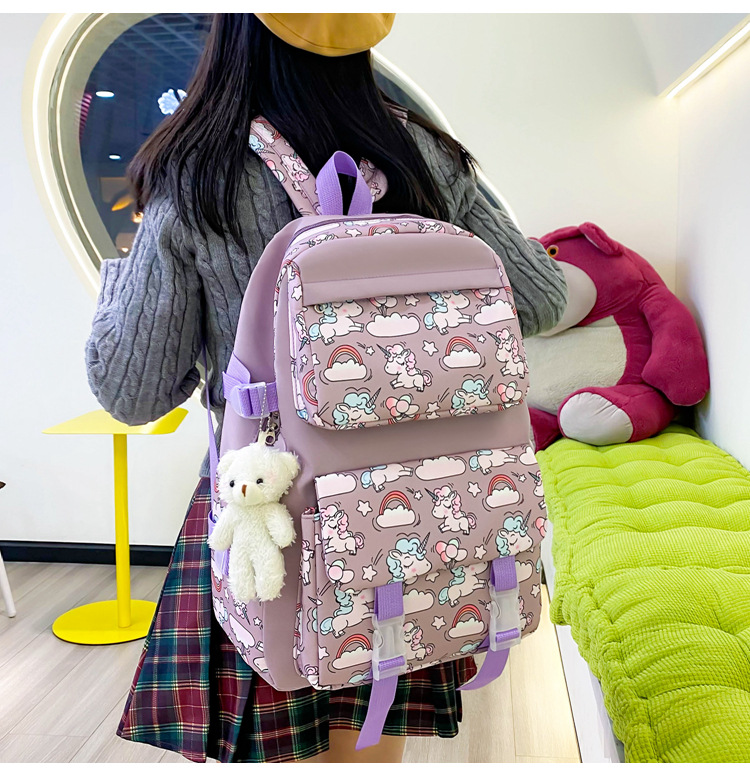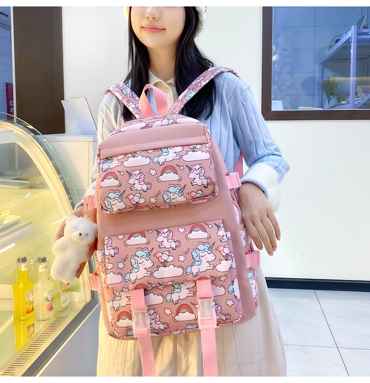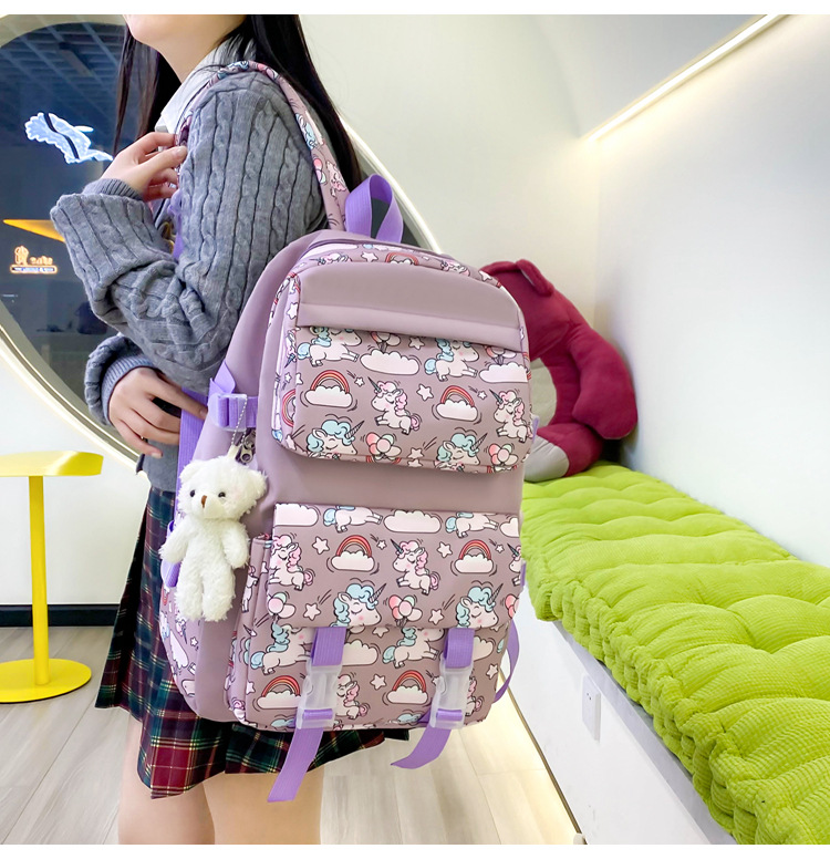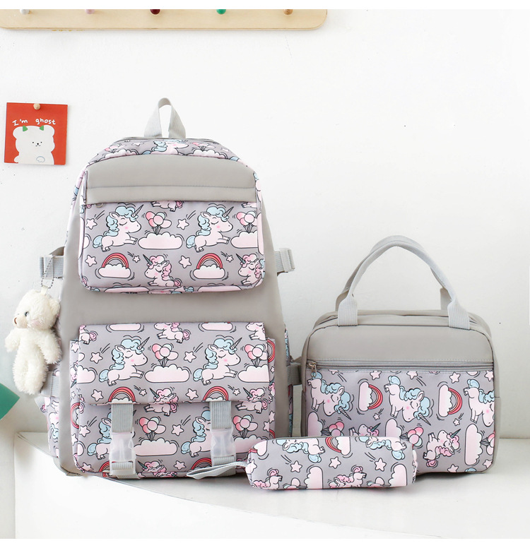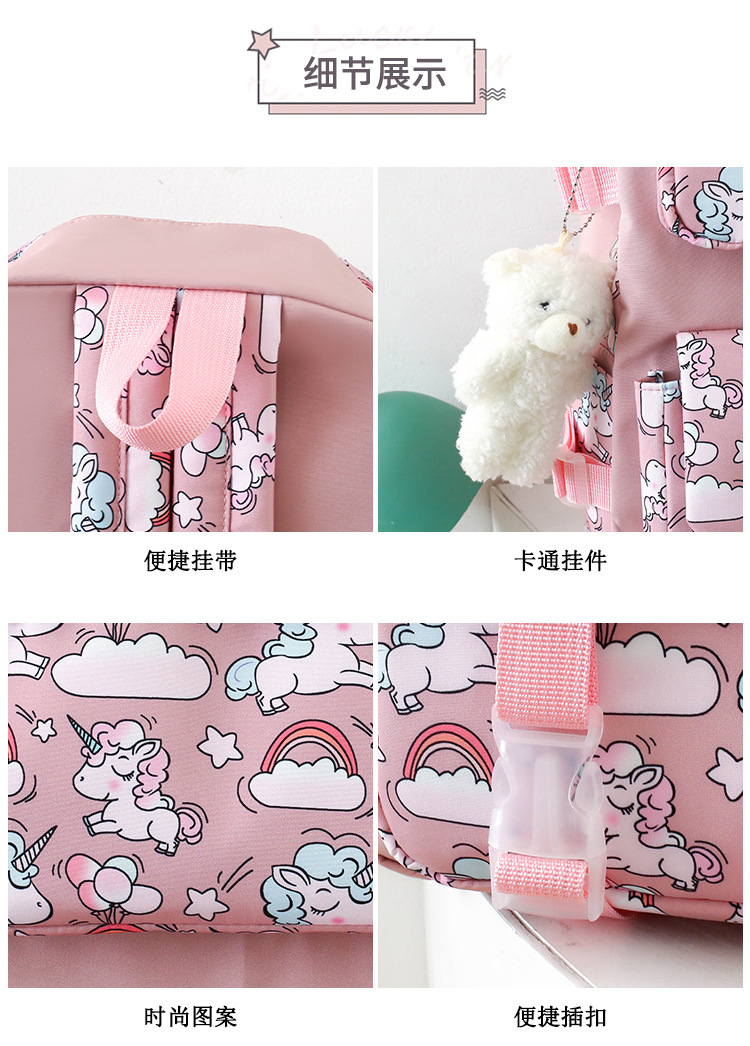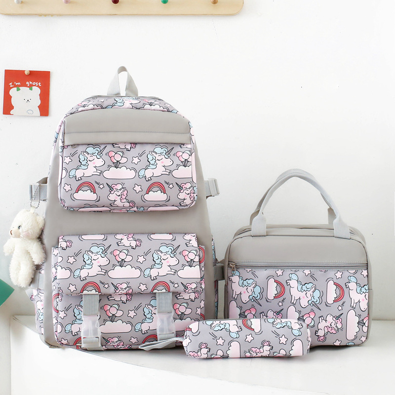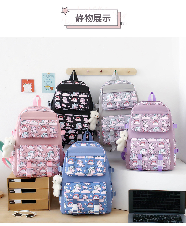 2025 새로운 경량 나일론 배낭 여성 귀여운 만화 3 피스 세트 초등 학생 대용량 학교 가방 도매