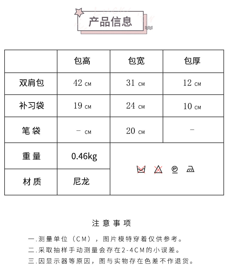 2025 새로운 경량 나일론 배낭 여성 귀여운 만화 3 피스 세트 초등 학생 대용량 학교 가방 도매스토어 가기