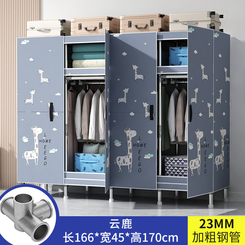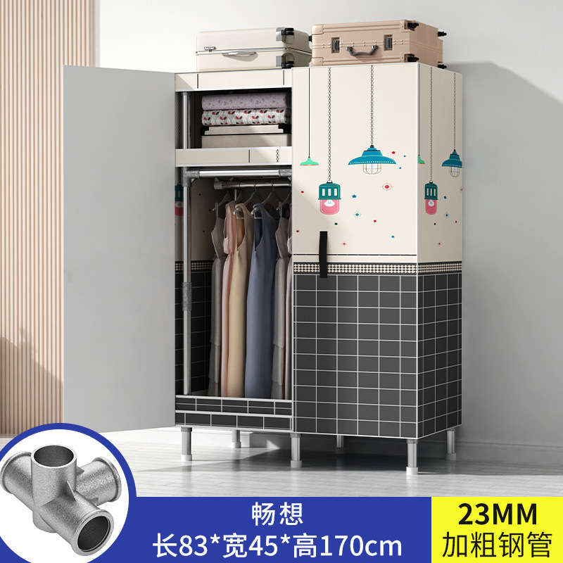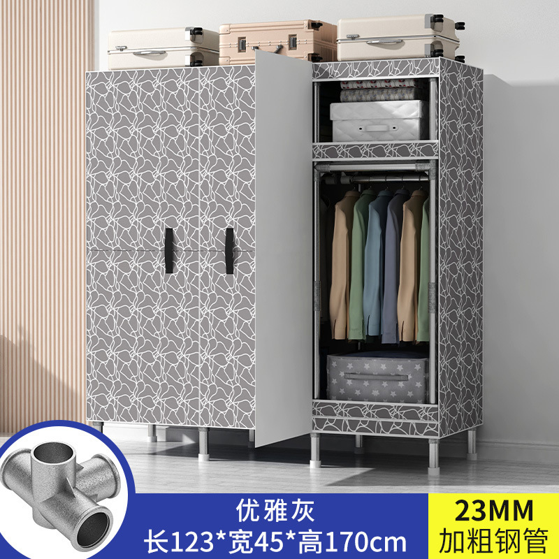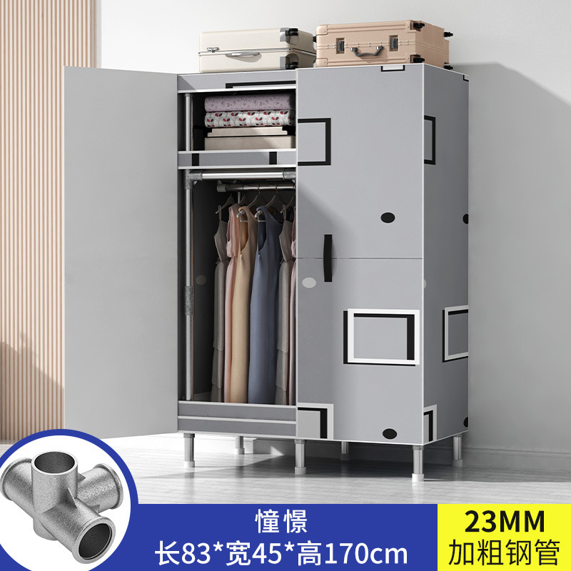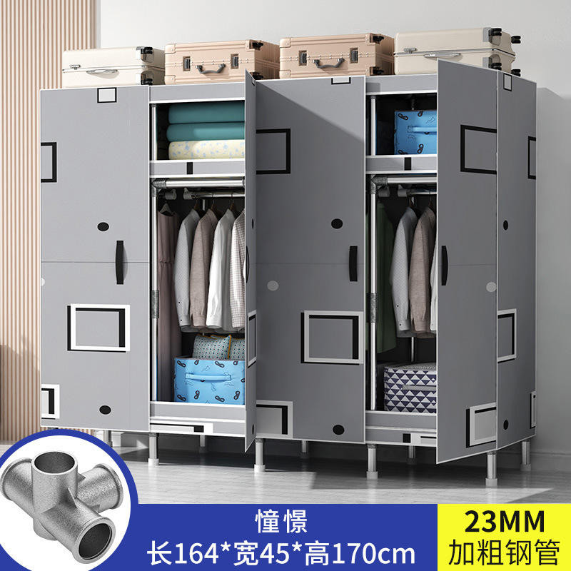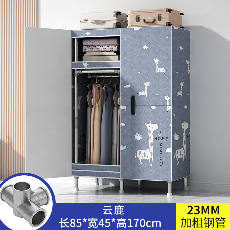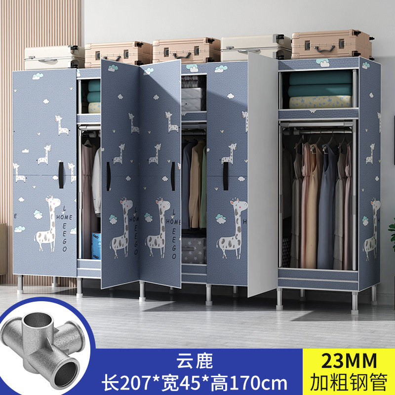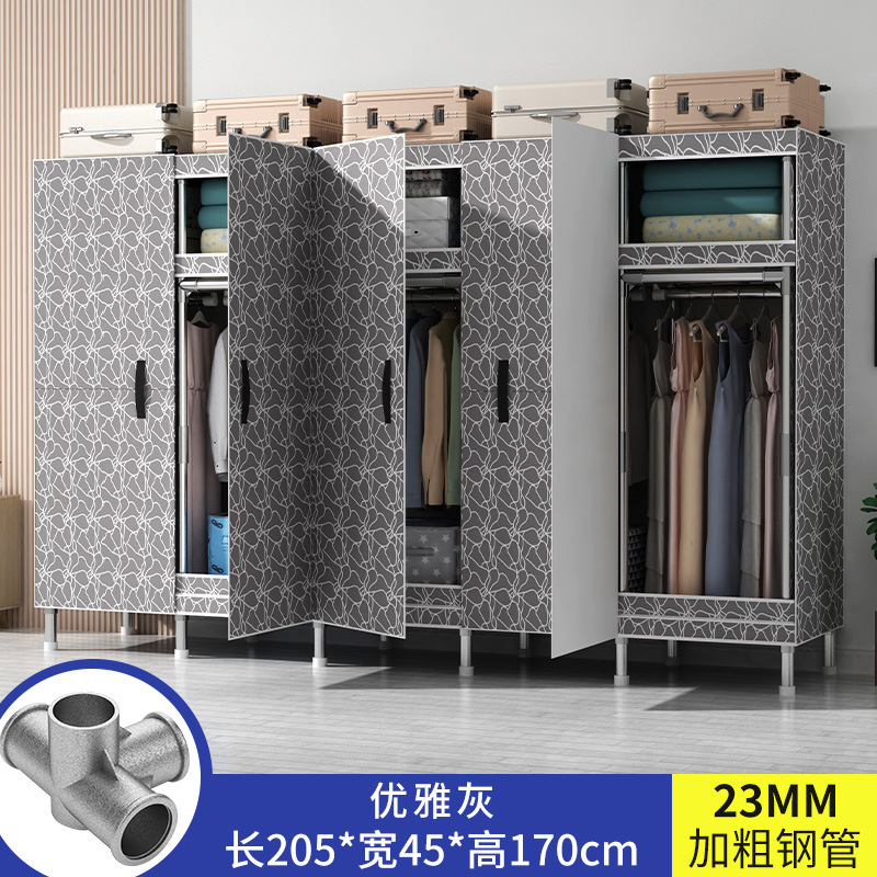 간단한 옷장 가정용 침실 강철 튜브가 두껍게 강화 된 전체 강철 프레임 천 옷장 임대 룸 내구성