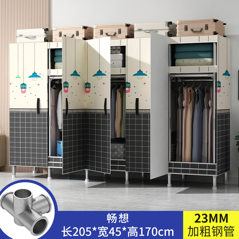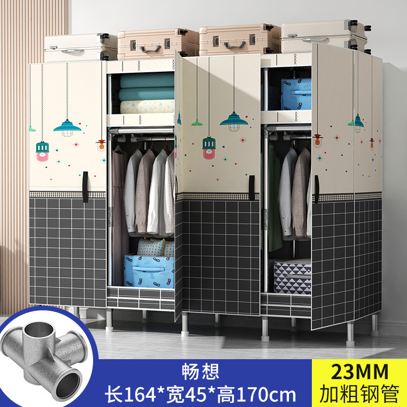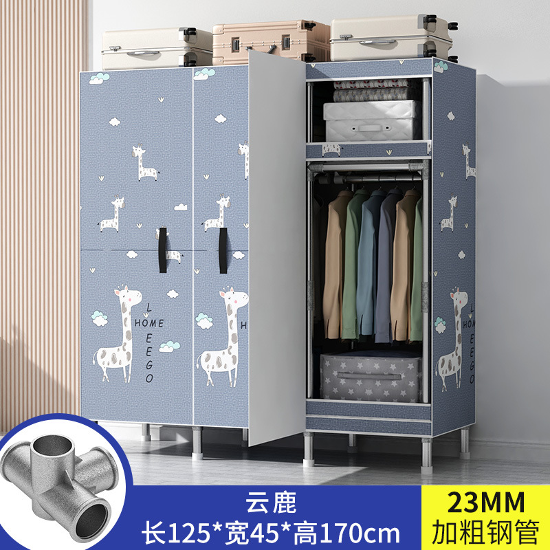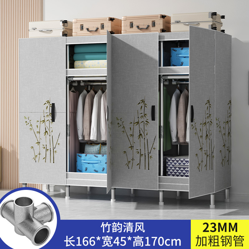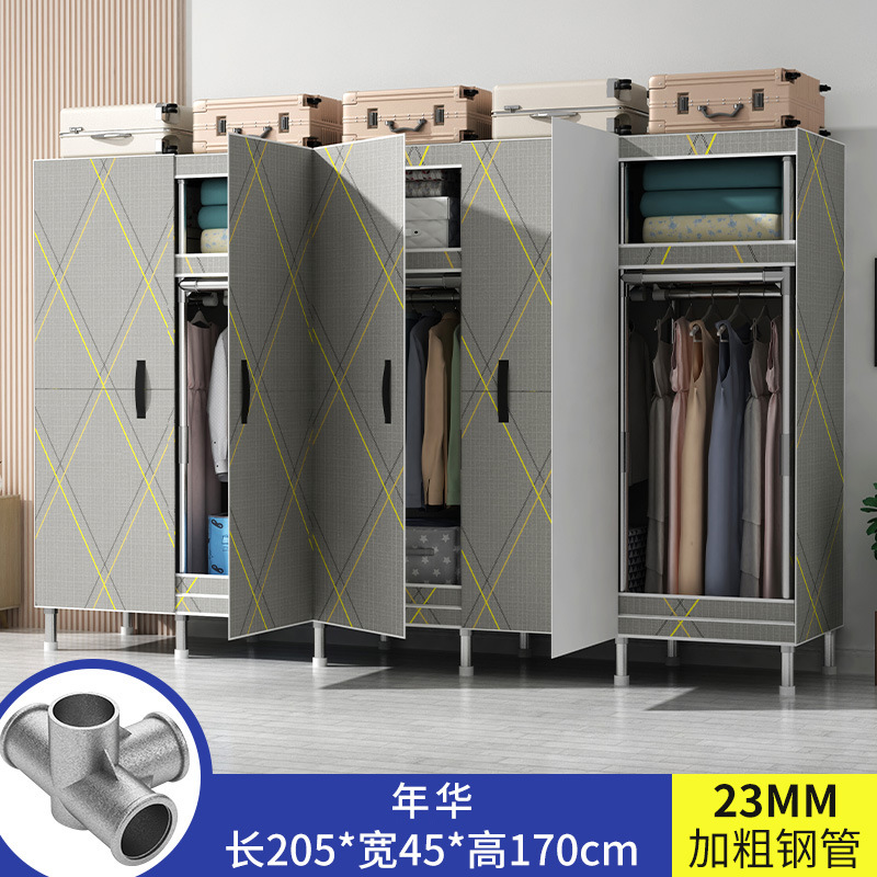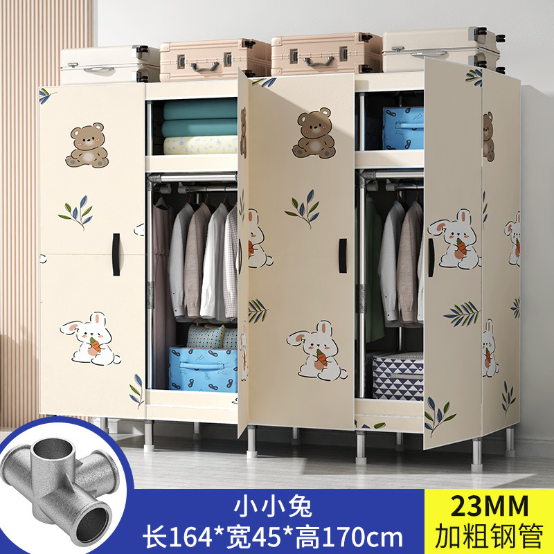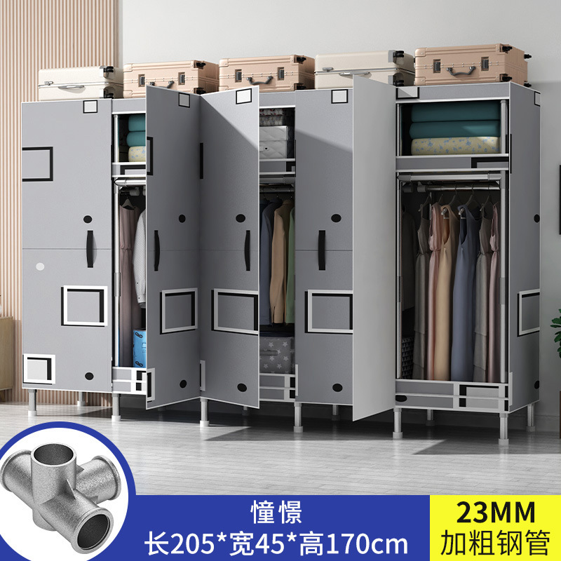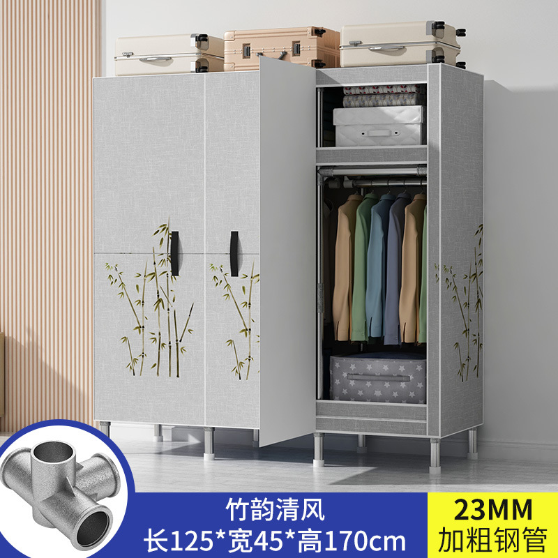 간단한 옷장 가정용 침실 강철 튜브가 두껍게 강화 된 전체 강철 프레임 천 옷장 임대 룸 내구성