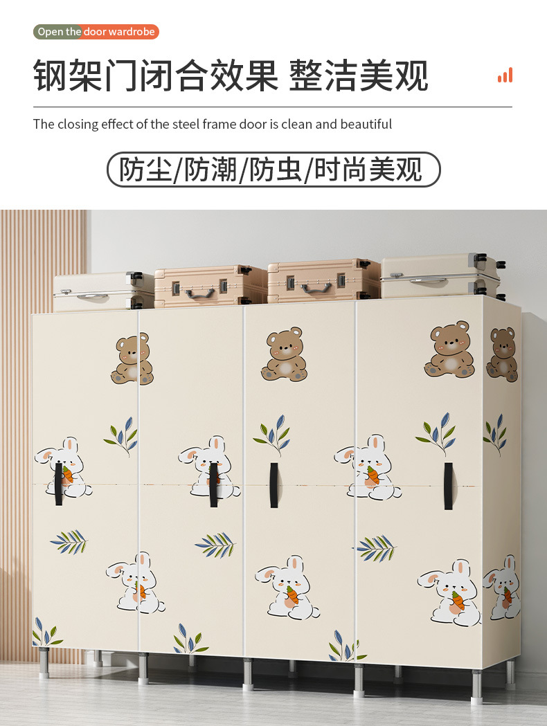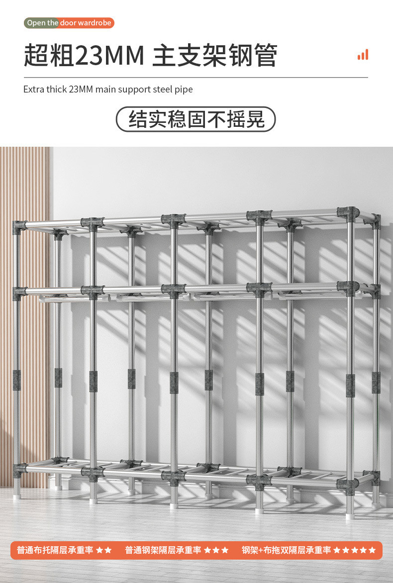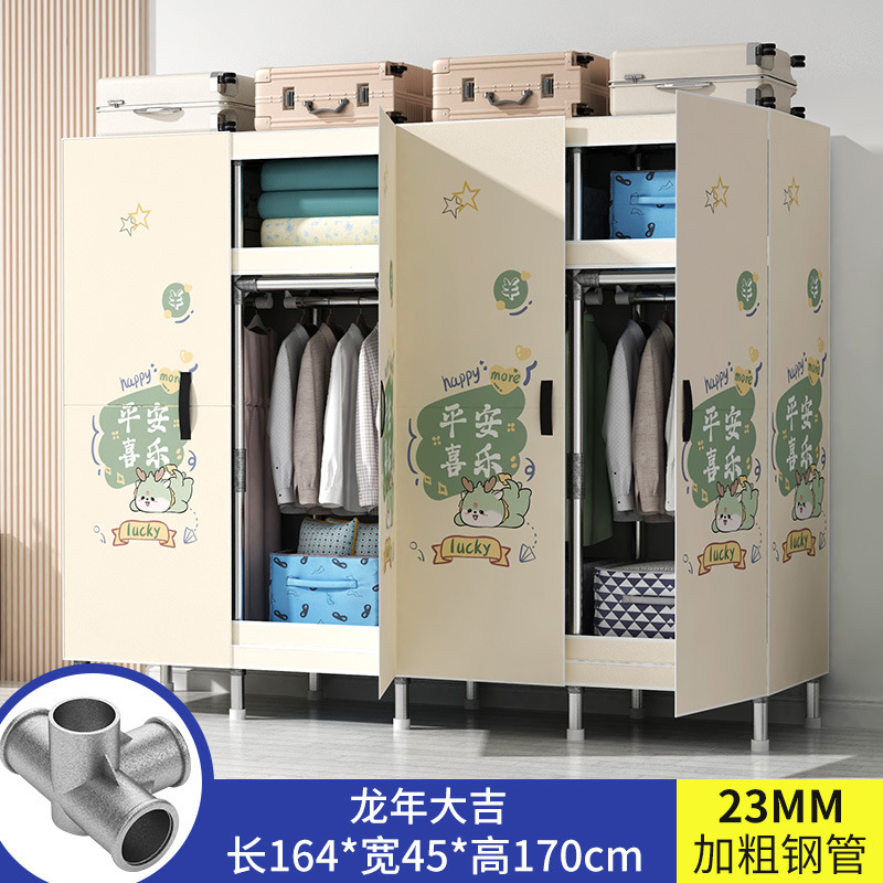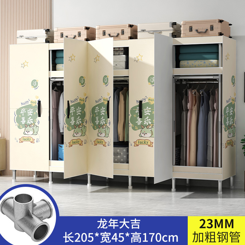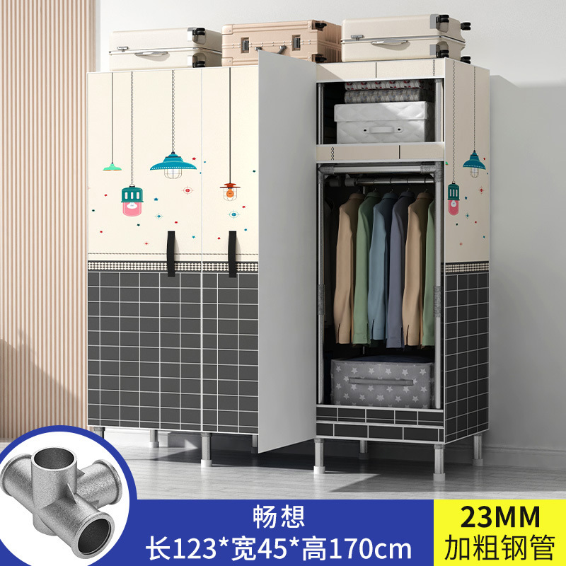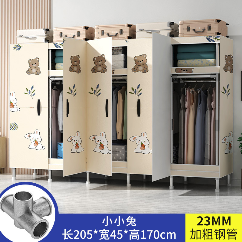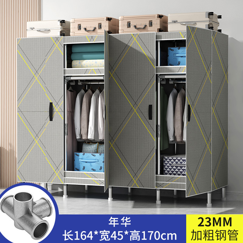 간단한 옷장 가정용 침실 강철 튜브가 두껍게 강화 된 전체 강철 프레임 천 옷장 임대 룸 내구성