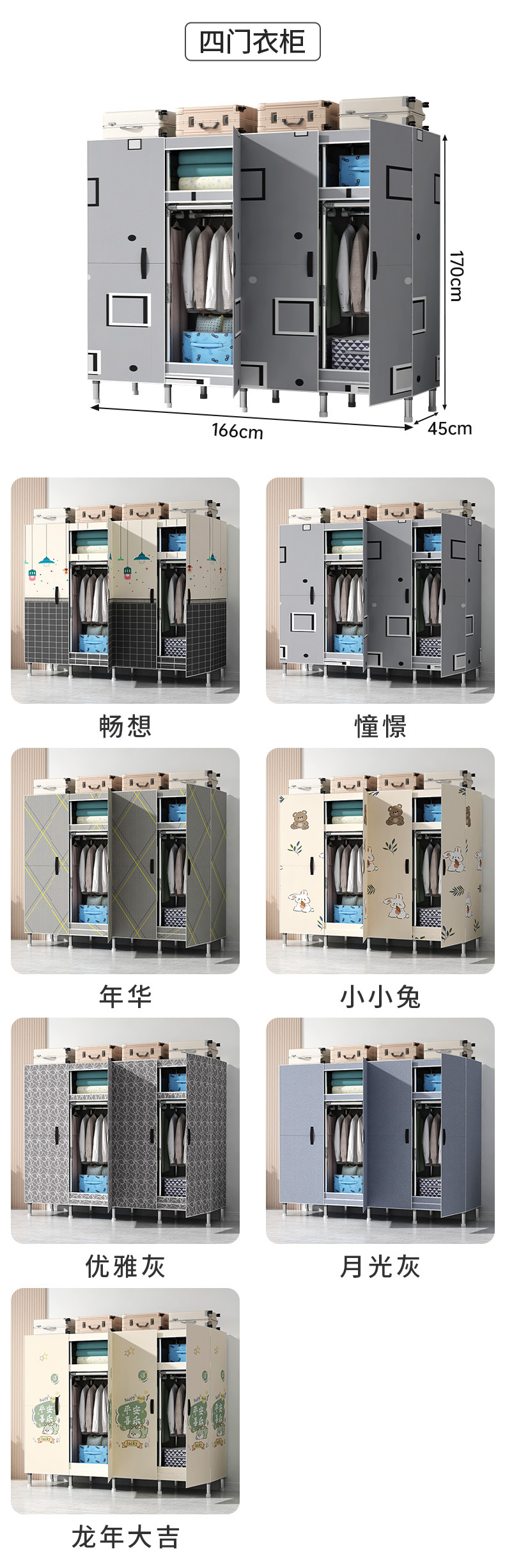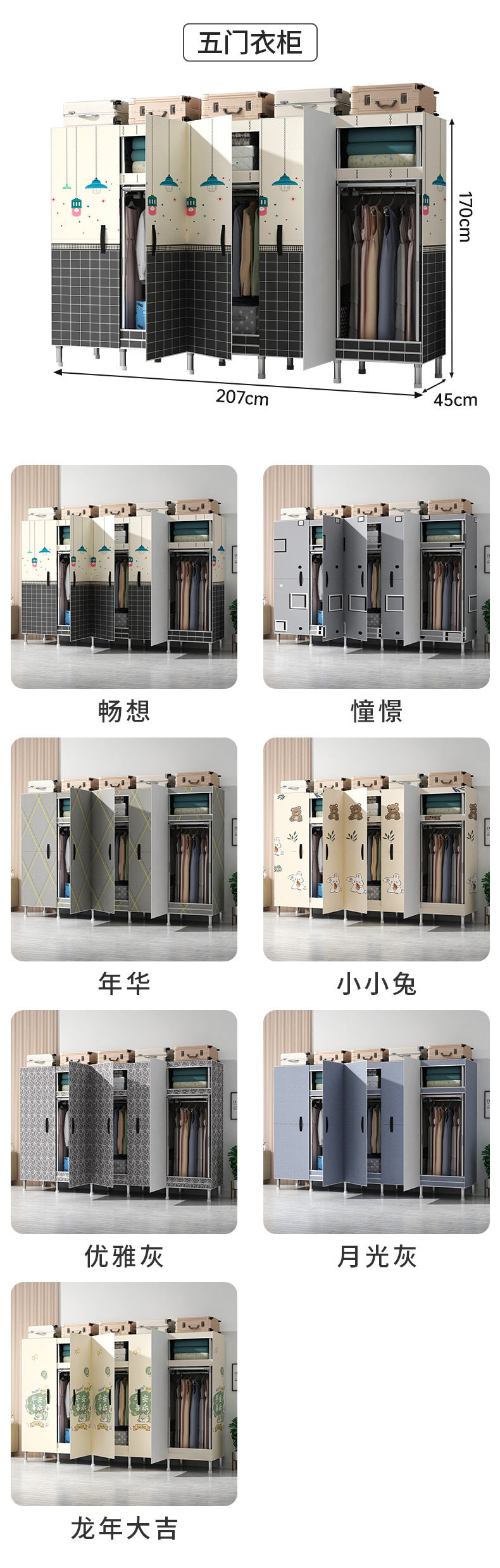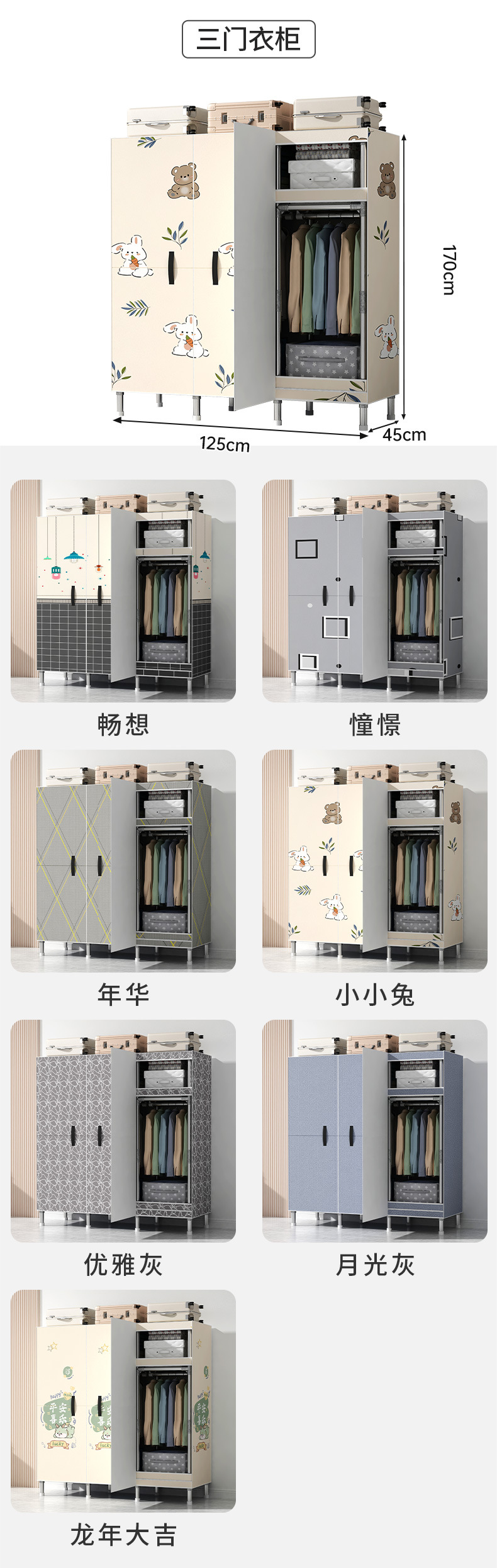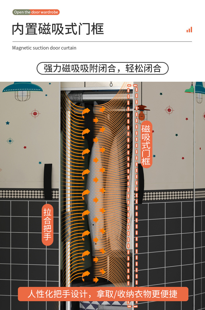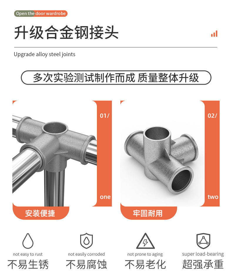간단한 옷장 가정용 침실 강철 튜브가 두껍게 강화 된 전체 강철 프레임 천 옷장 임대 룸 내구성