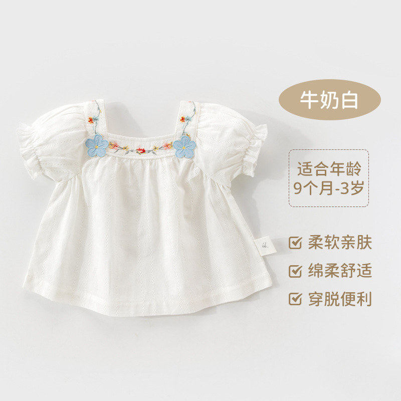 여자 반팔 아기 퍼프 소매 셔츠 반팔 어린이 티셔츠 여자 외출 티셔츠 반팔 여름 아동복
