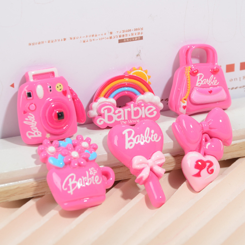 DIY 수지 액세서리 도매 휴대 전화 펜던트 키 체인 헤어 클립 문구 상자 핑크 바비 시리즈 무지개스토어 가기