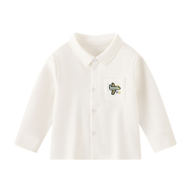 봄 소년 바닥 카디건 코튼 옷깃 새로운 한국식 포켓 자수 흰색 셔츠 어린이 교복 티셔츠