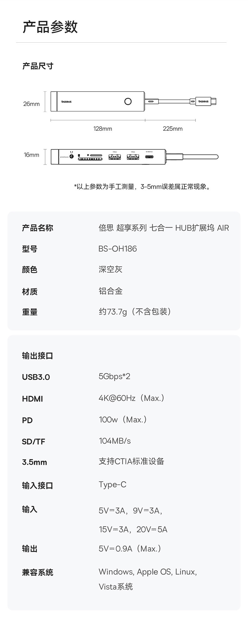 • 슈퍼 시리즈 7 대 1 허브 도킹 스테이션 AIR 딥 스페이스 그레이
