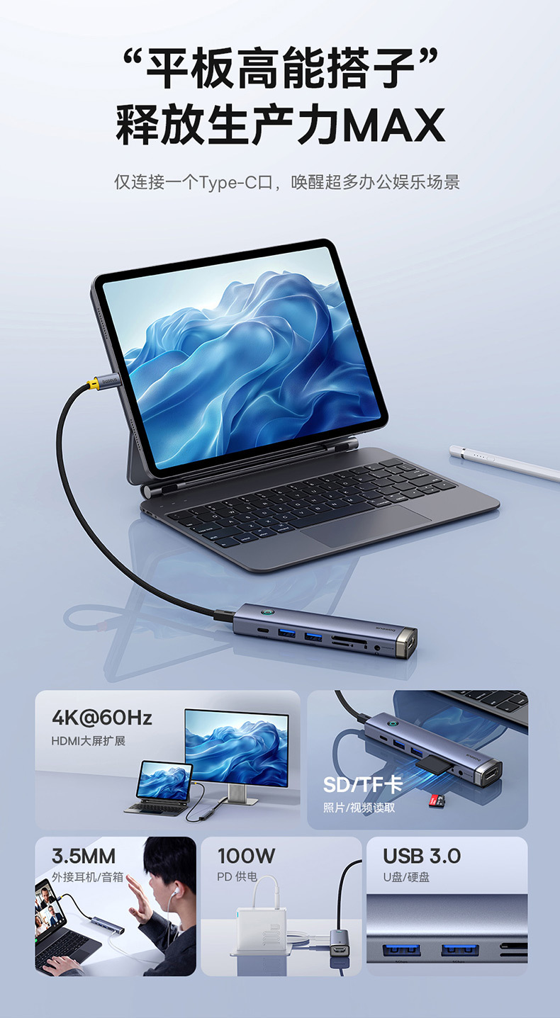 도매 슈퍼 시리즈 7 대 1 허브 에어 멀티 포트 다기능 T-C 허브 확장 도크