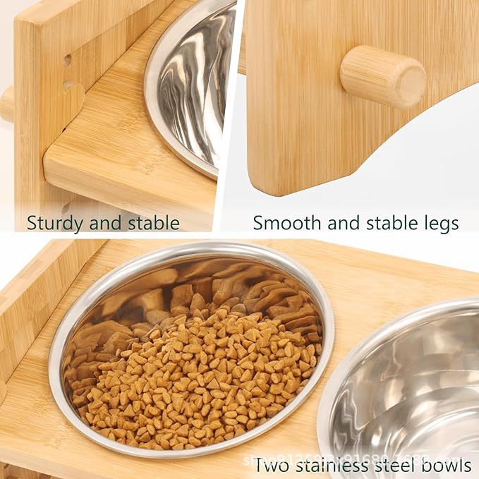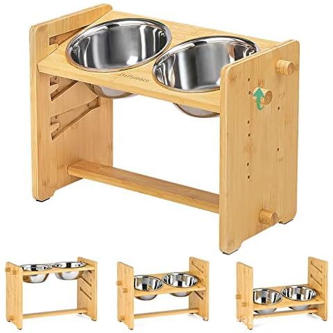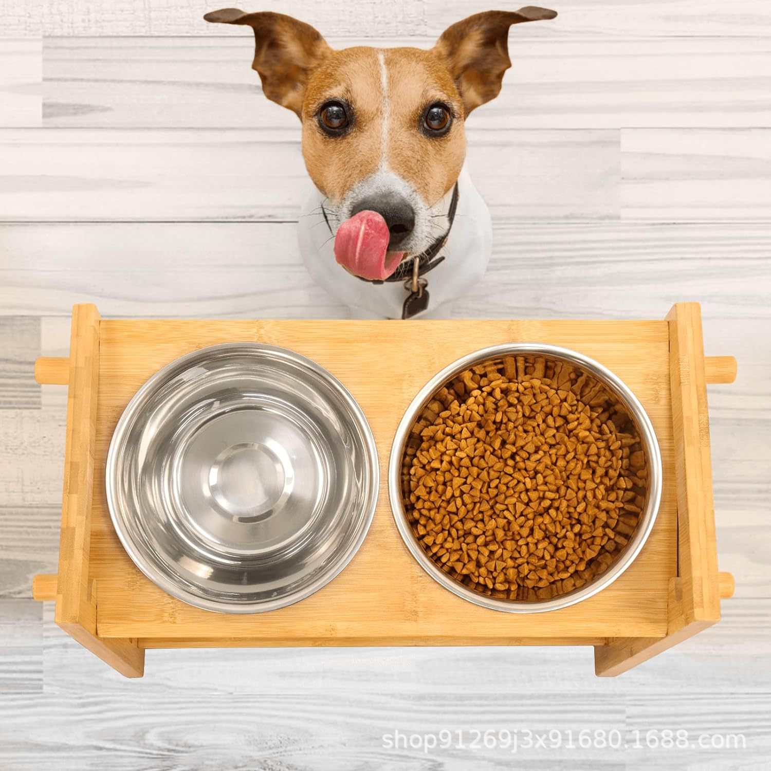 국경 간 보호 자궁 경부 척추 애완 동물 그릇 보편적으로 조절 가능한 높이 고양이 그릇 더블 그릇 개 그릇 단단한 나무 랙 피더스토어 가기