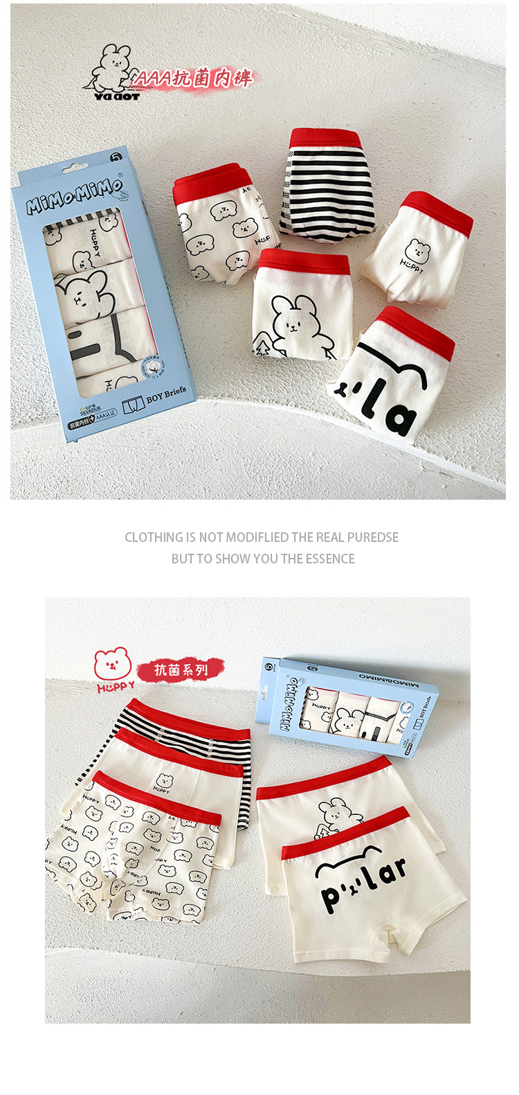 MIMO 순면 A급 아동용 속옷 항균 통기성 남아용 귀여운 만화 캐릭터 사각팬티 도매 수출용 371