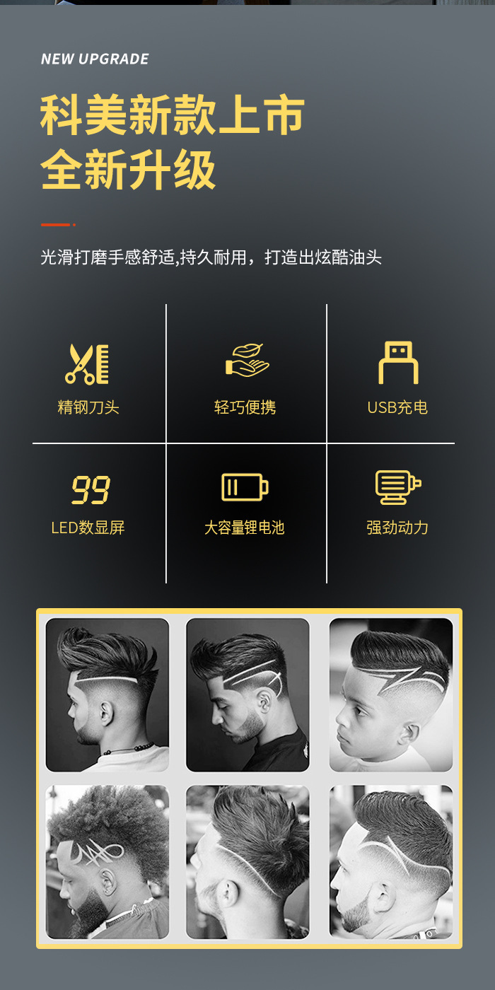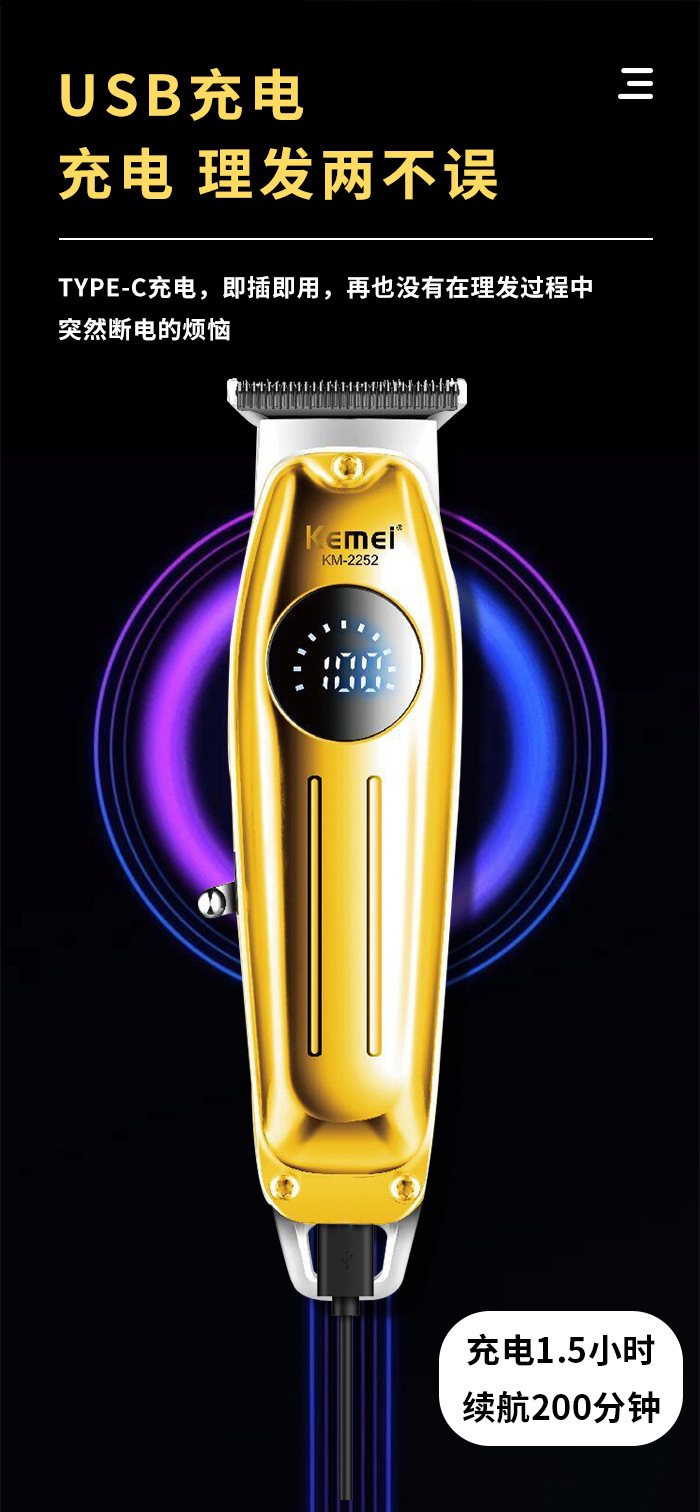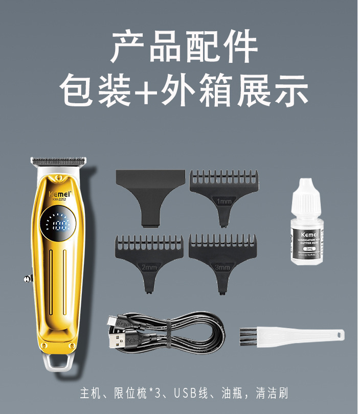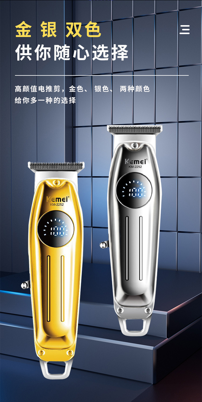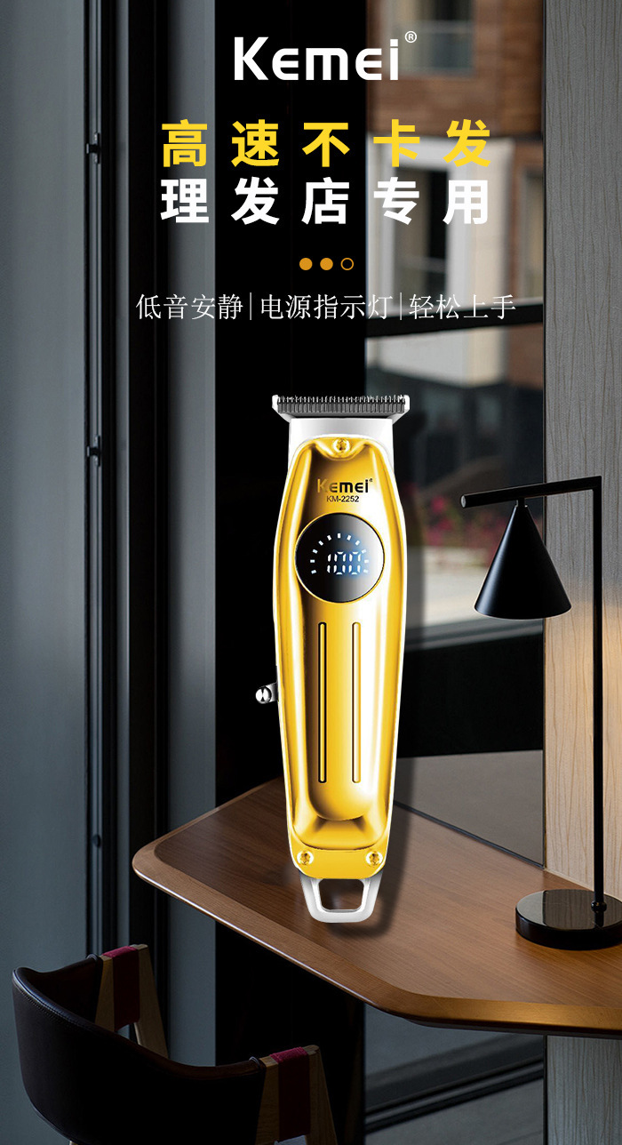 KM-2252 KEMEI 국경 스테인레스 스틸 커터 헤드 전기 클리퍼 헤어 클리퍼 전문 오일 헤드 조각 LCD 번호스토어 가기