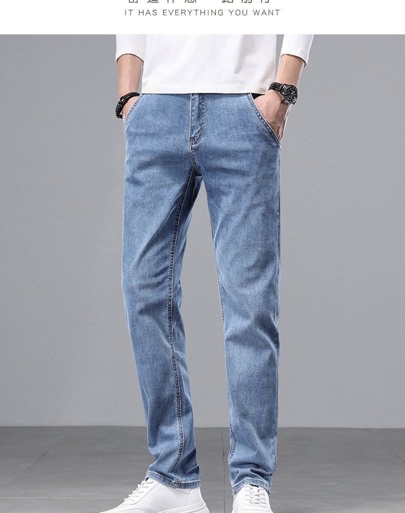 2024 새로운 하이 엔드 청바지 남성 스트레이트 슬림 핏 봄과 여름 복고풍 남성 바지 여름 얇은 캐주얼 바지 남성