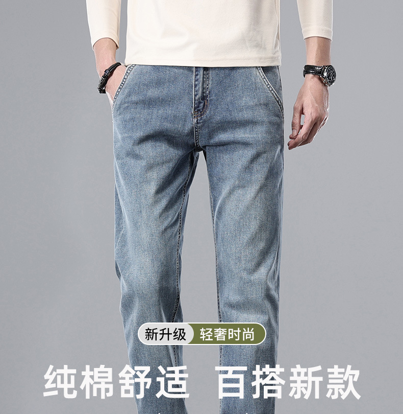2024 새로운 하이 엔드 청바지 남성 스트레이트 슬림 핏 봄과 여름 복고풍 남성 바지 여름 얇은 캐주얼 바지 남성스토어 가기
