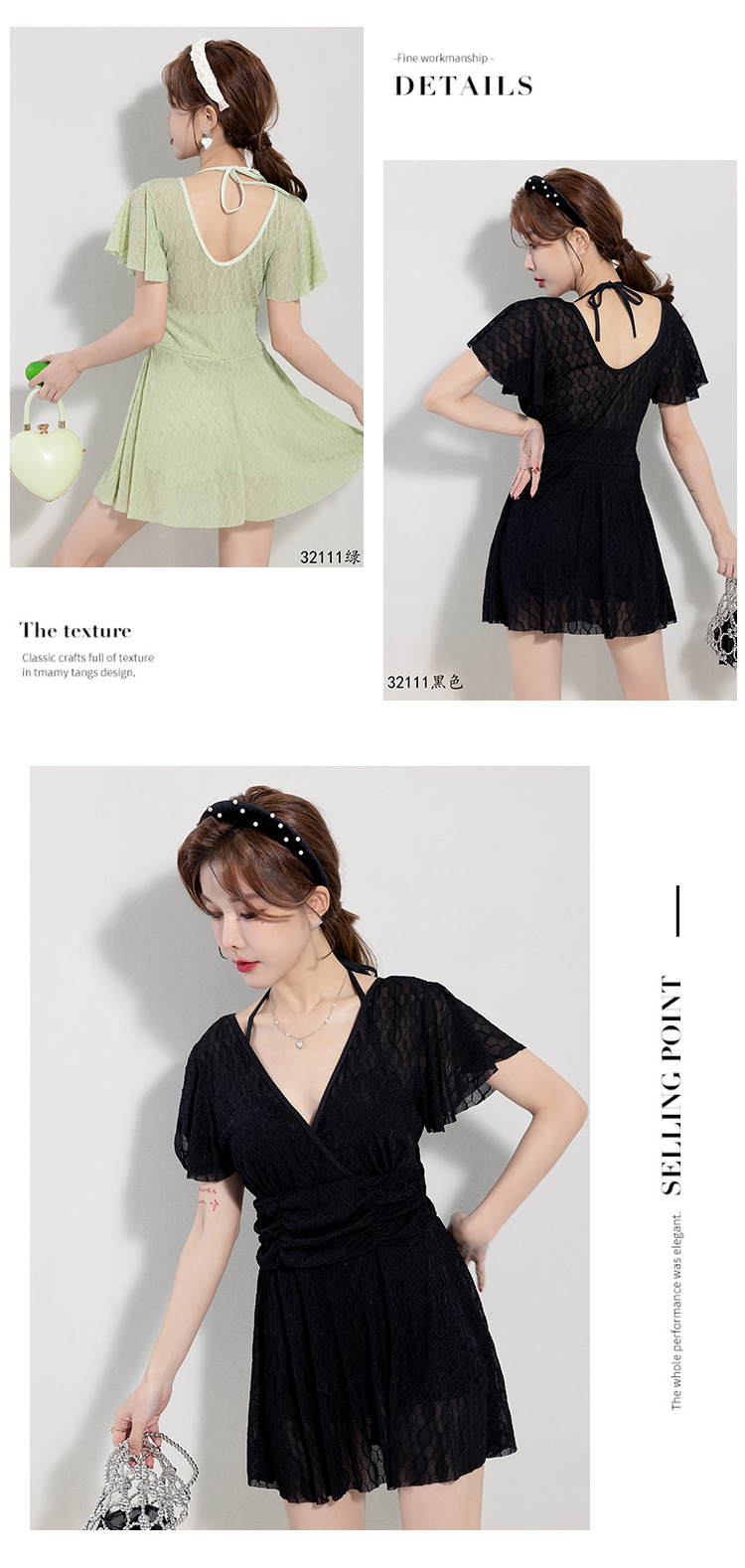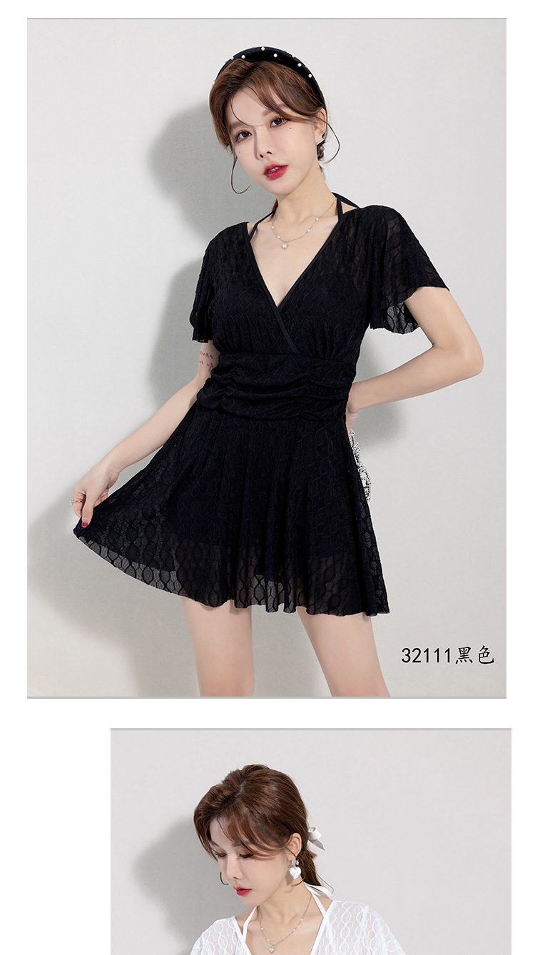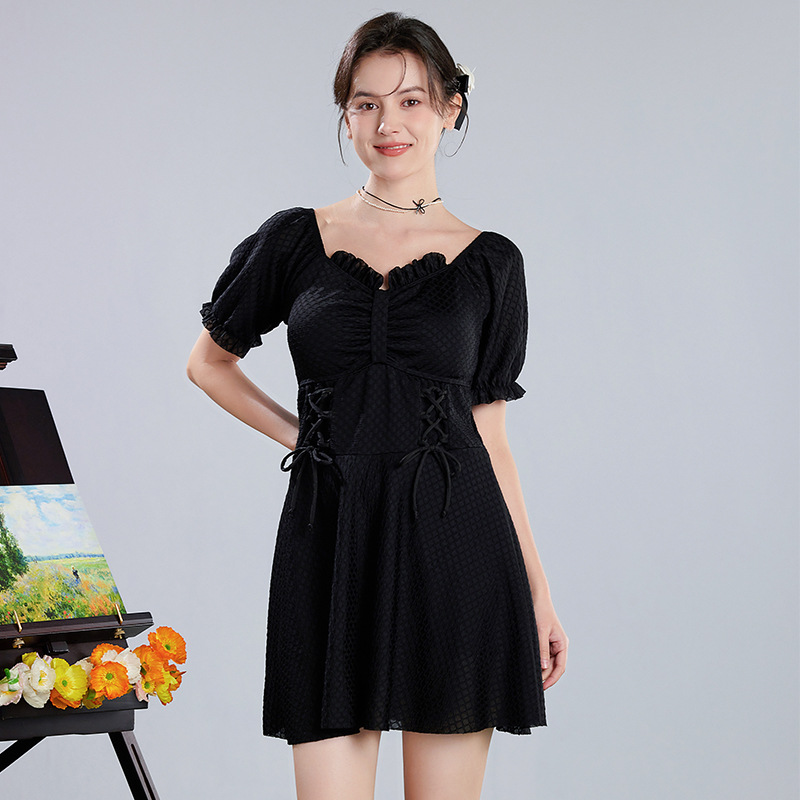 2025 새로운 수영복 여성의 보수적 인 단색 신선한 원피스 스커트 수영복 비치 온천 칼라 수영복 도매