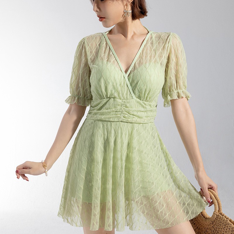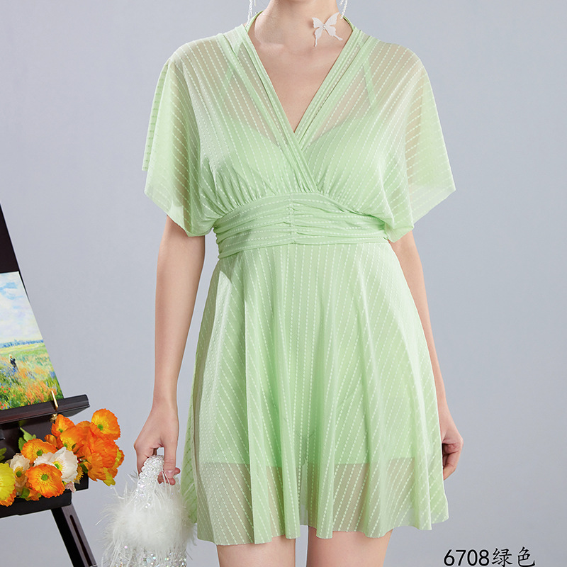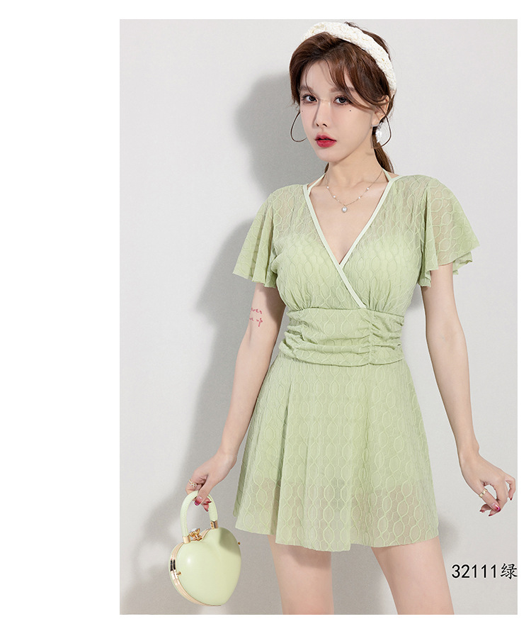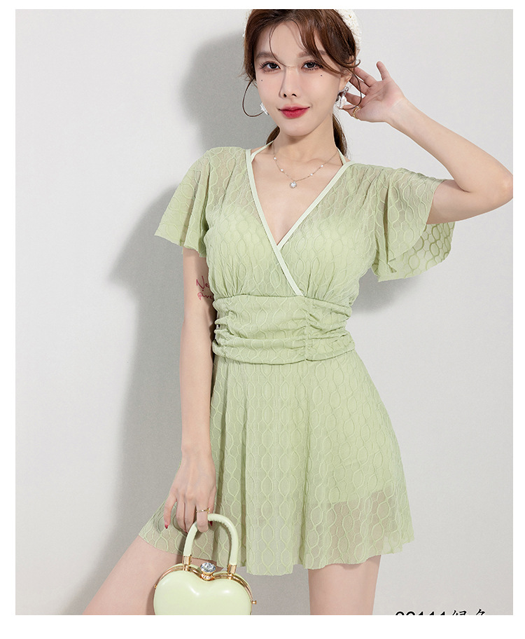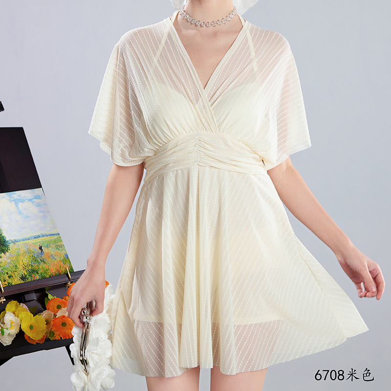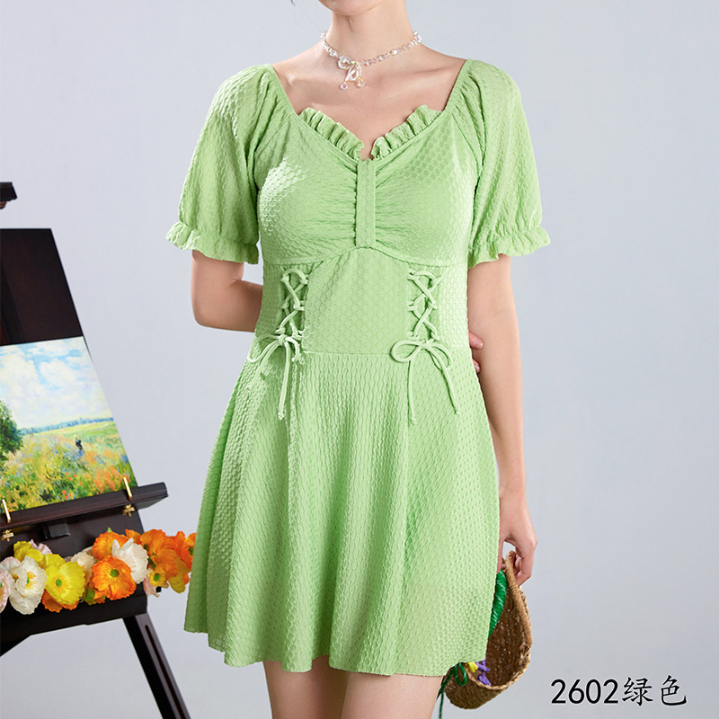 2025 새로운 수영복 여성의 보수적 인 단색 신선한 원피스 스커트 수영복 비치 온천 칼라 수영복 도매스토어 가기