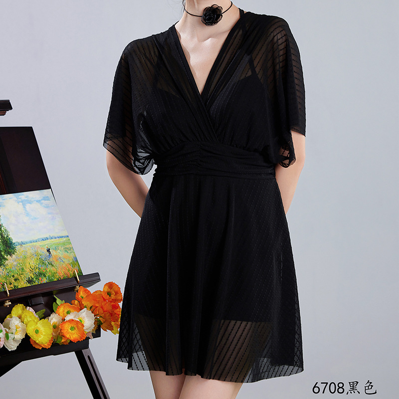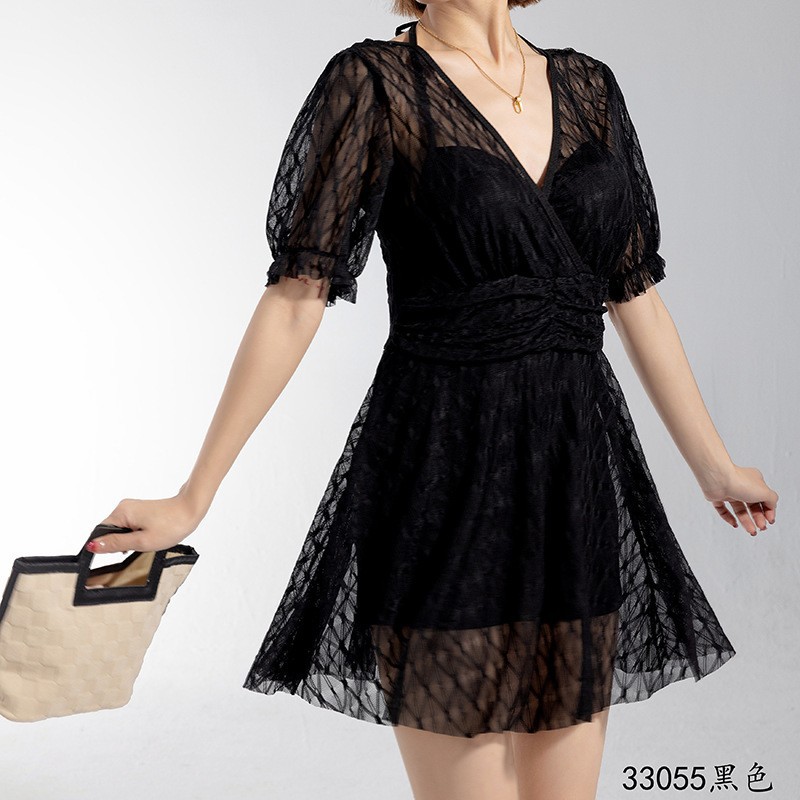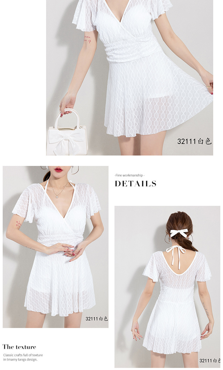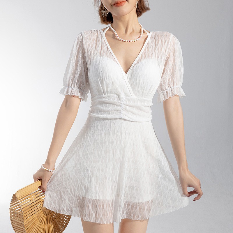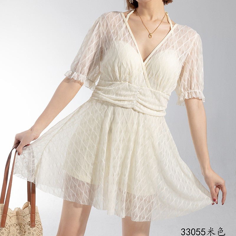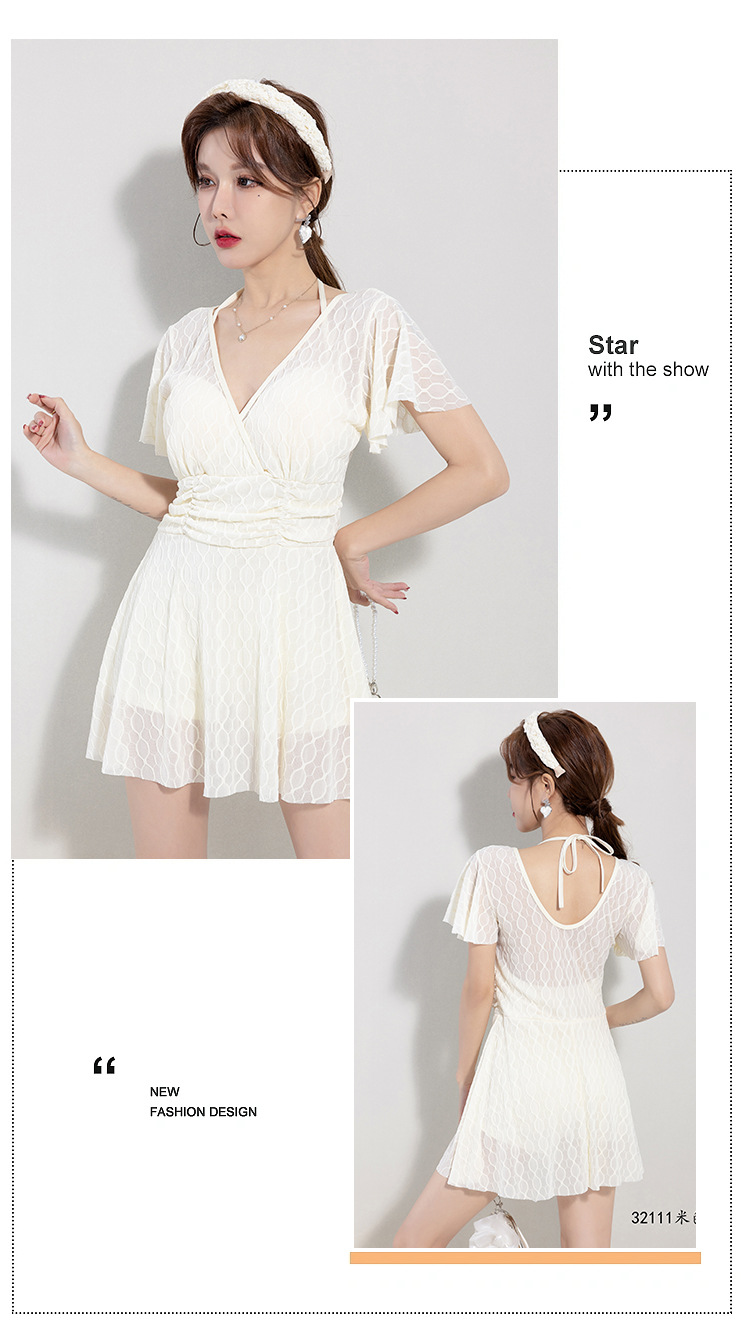 2025 새로운 수영복 여성의 보수적 인 단색 신선한 원피스 스커트 수영복 비치 온천 칼라 수영복 도매스토어 가기
