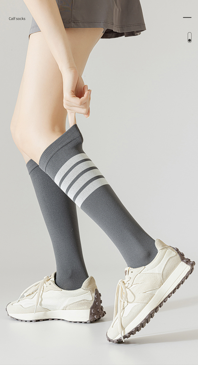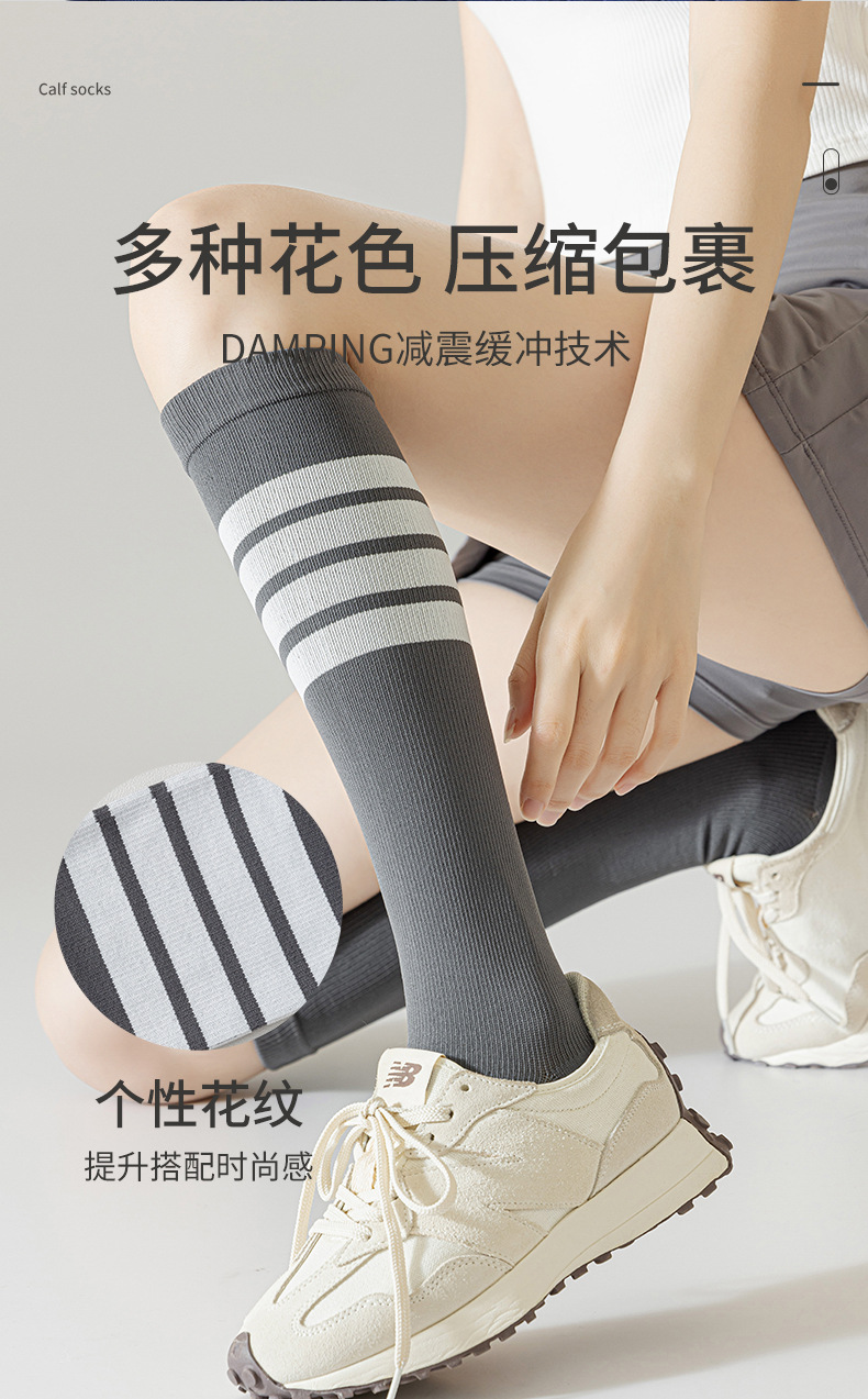 스포츠 근육 압축 양말 4 시즌 길이의 로프 압력 스키니 줄무늬 종아리 양말을 건너 뛰는 여성 전문 피트니스스토어 가기