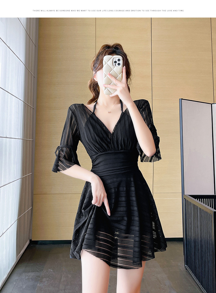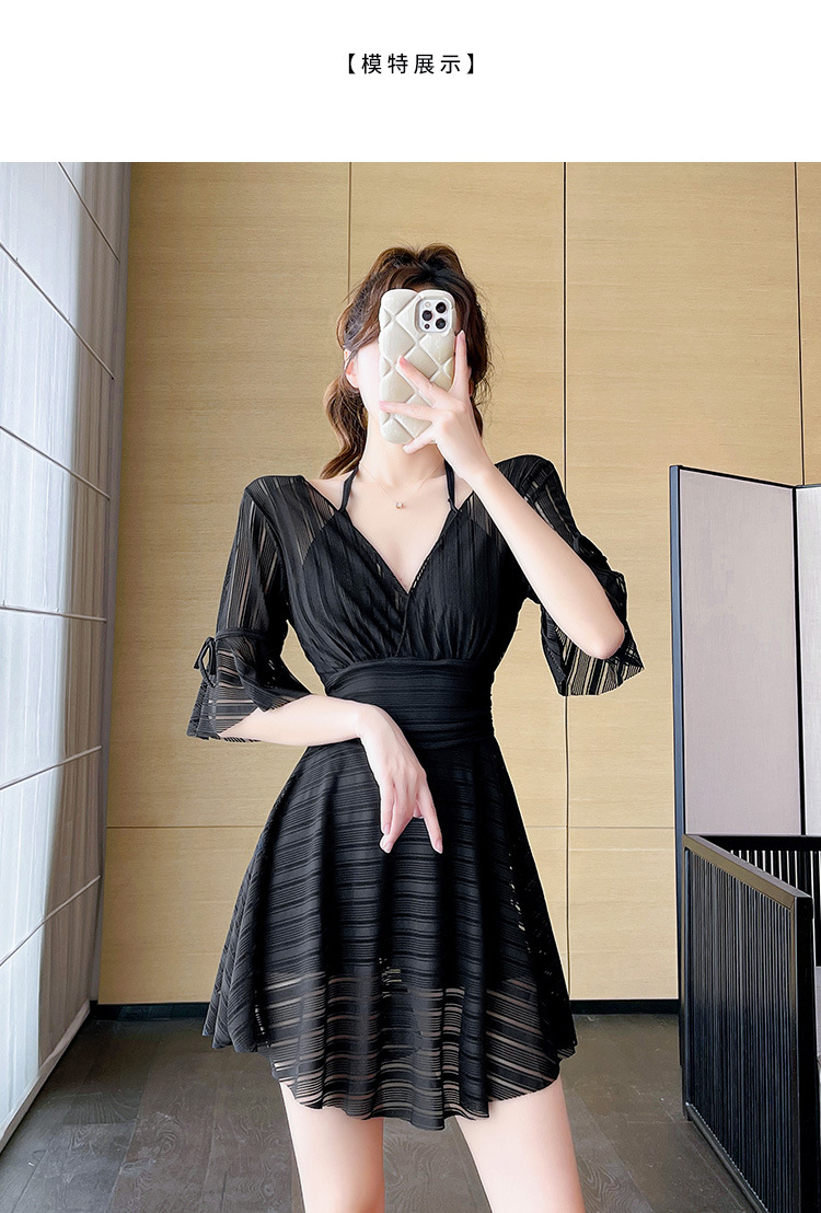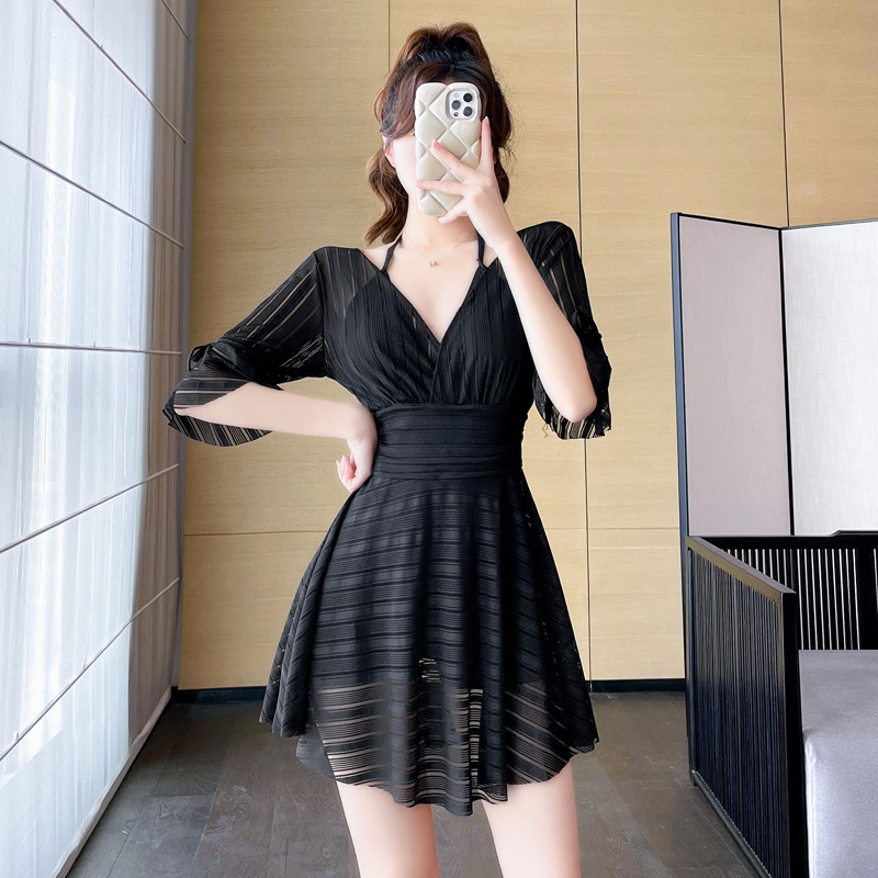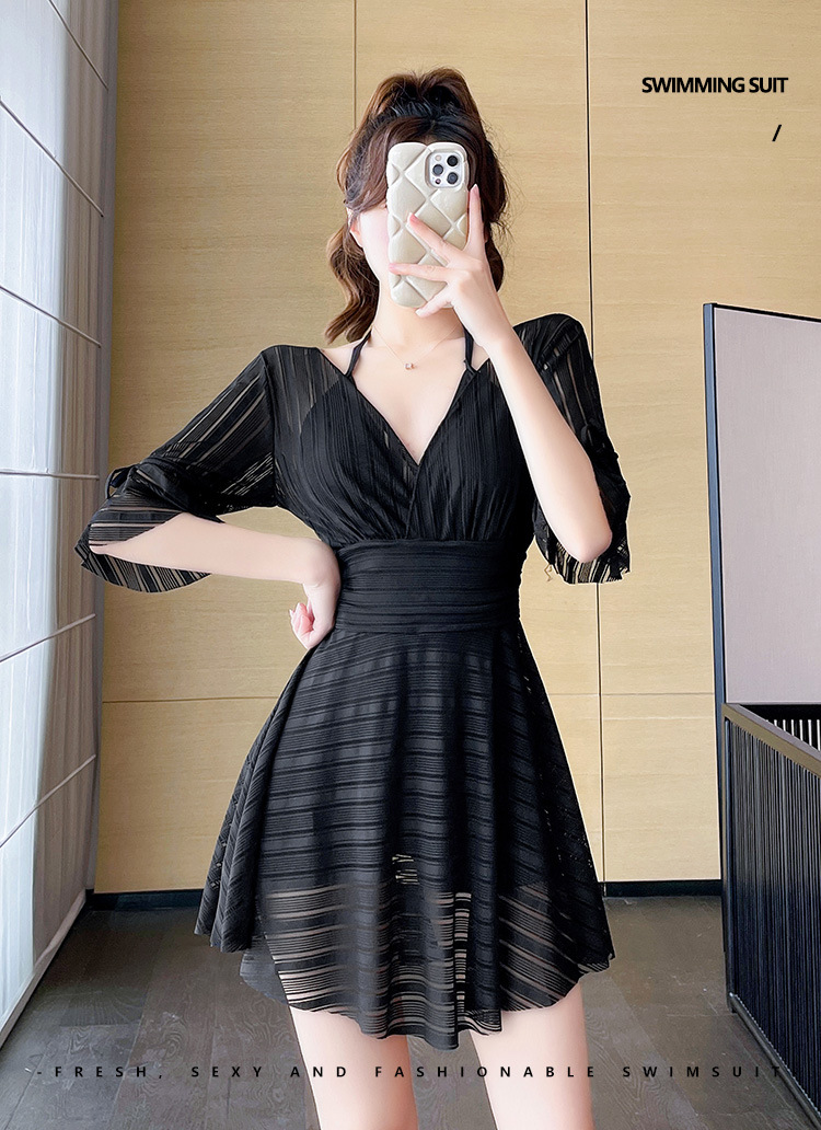 여성용 블랙 수영복, 빅사이즈, 스커트형, 원피스, 보수적, 스틸테이프, 푸쉬업, 슬리밍, 배 가리기, 고급스러운 수영복, 온천욕용스토어 가기