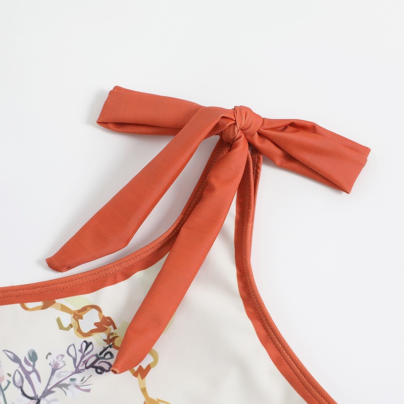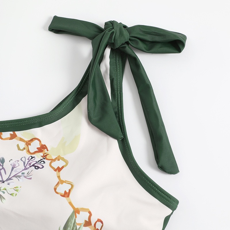 2024 새로운 패션 프린트 원피스 수영복 여성 유럽과 미국의 복고풍 원 숄더 쉬폰 비치 원피스 비키니 세트