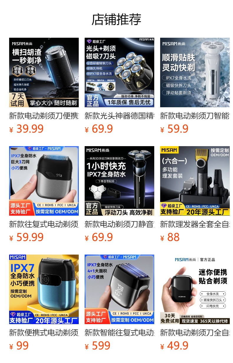 새로운 AI 전기면도기, 대외 무역 맞춤형 도매 면도기, 휴대용 미니 전신 방수 고속 충전 면도기스토어 가기