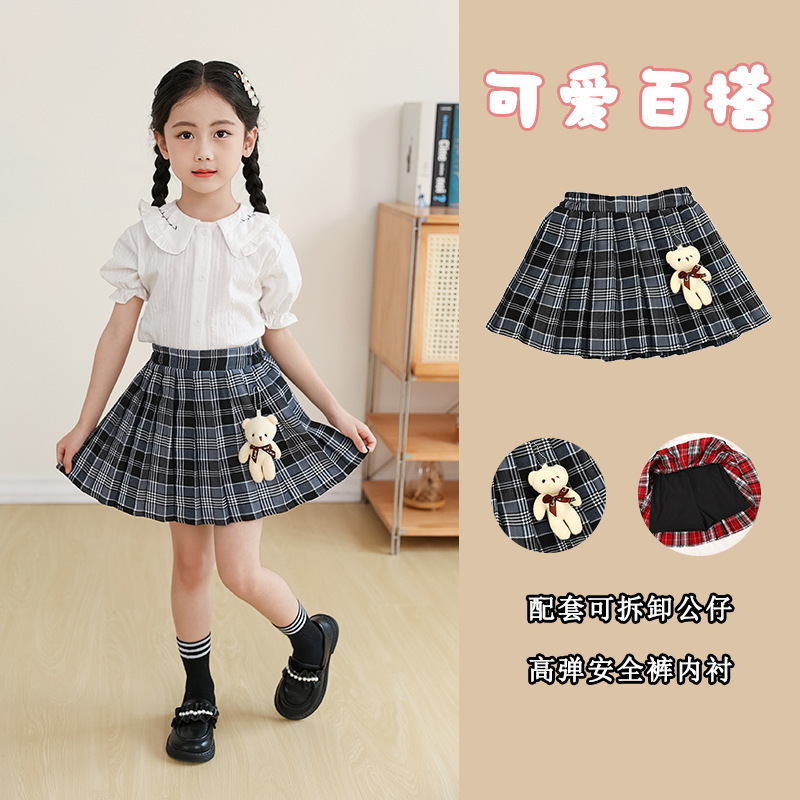 여자 치마 주름 치마 봄과 가을 여름 어린이 치마 귀여운 프레피 스타일 중학생 어린 소녀 치마스토어 가기