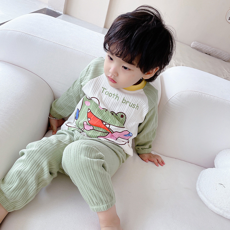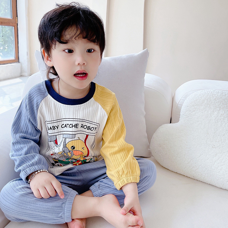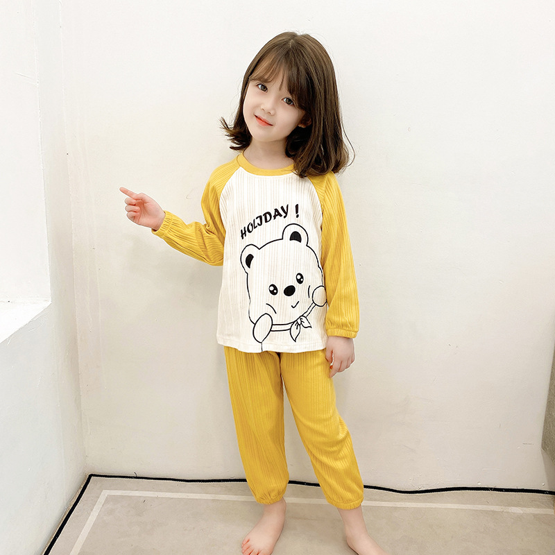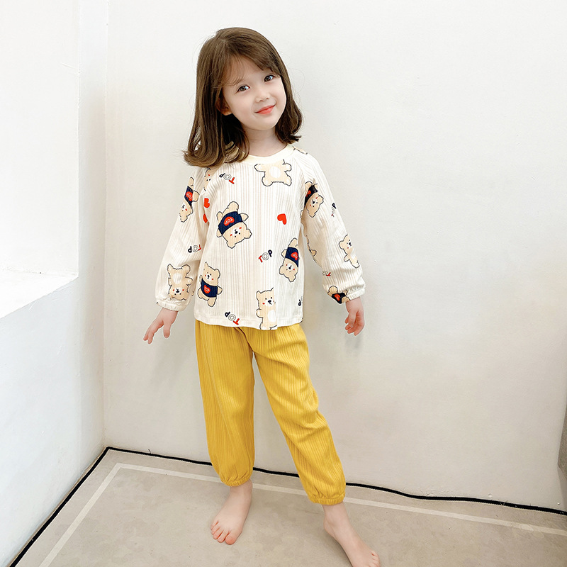 Cotton Boys의 긴팔 홈웨어 봄과 여름 아기 느슨한 풀오버 잠옷 얇은 소녀를 세트 어린이 잠옷스토어 가기