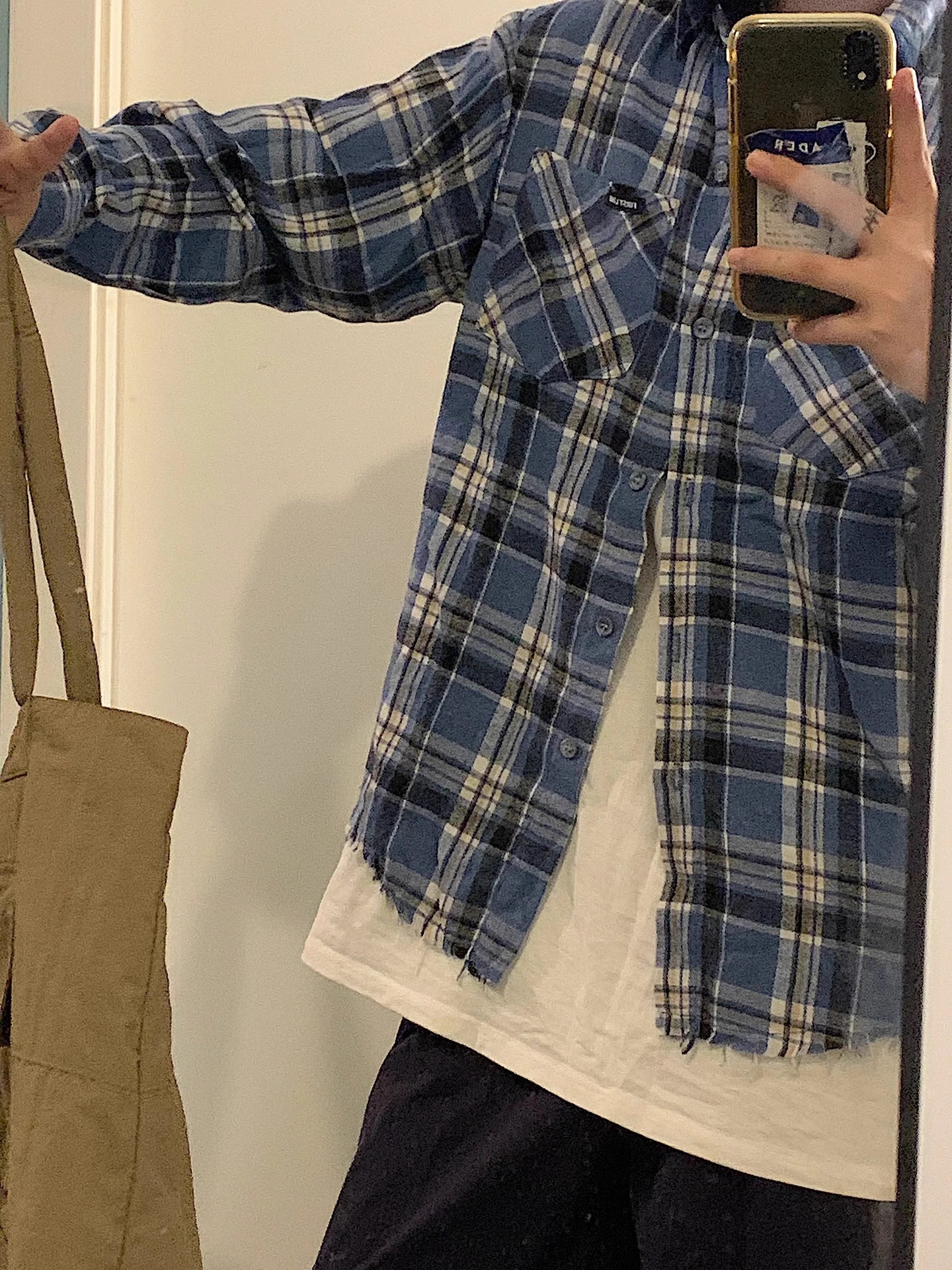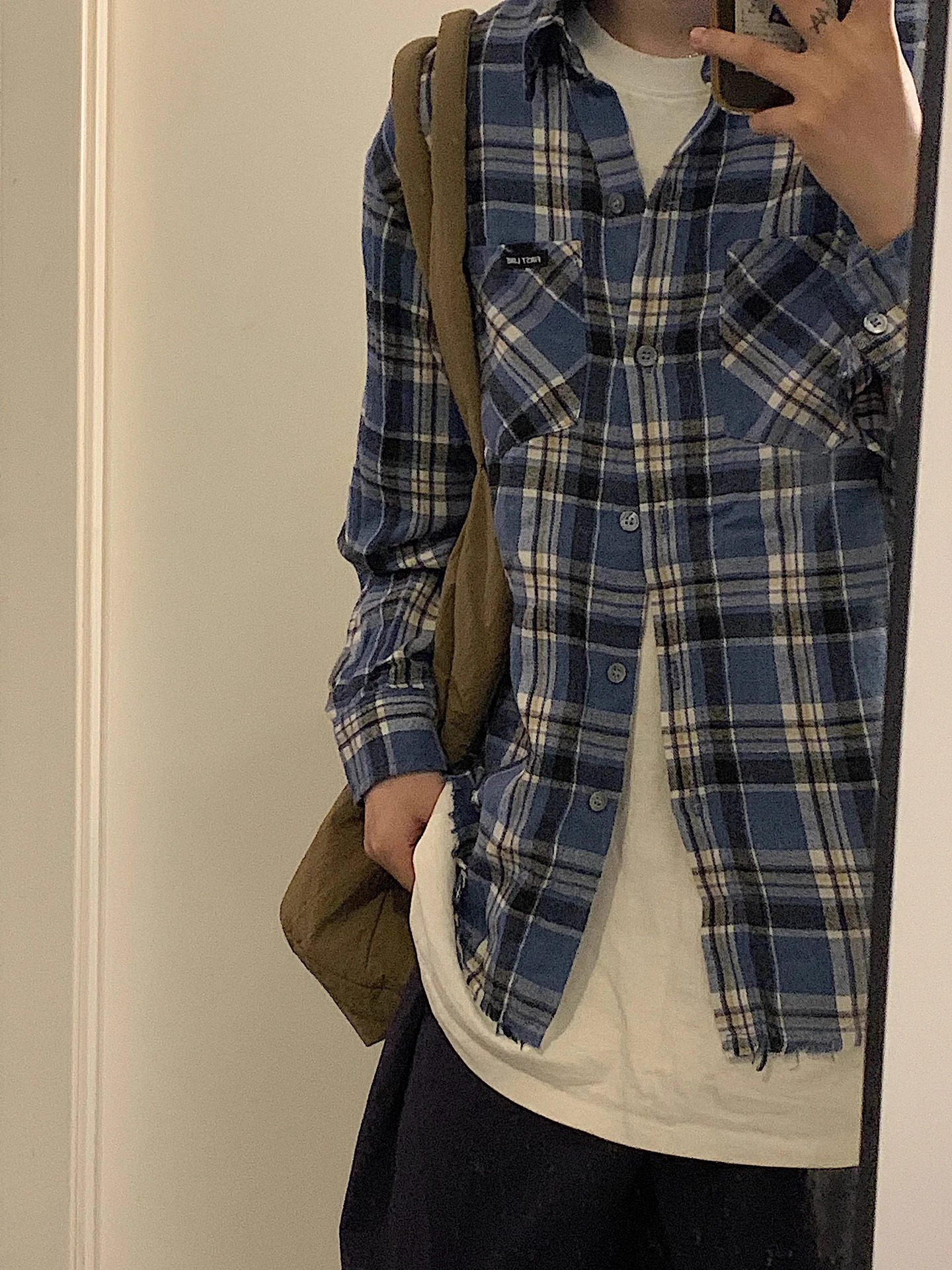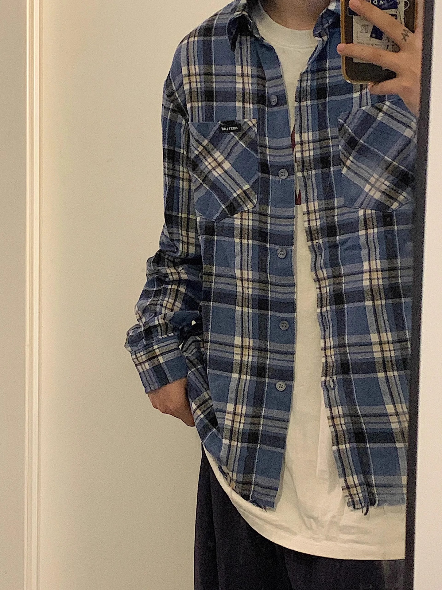 미국식 오버 사이즈 블루 체크 무늬 긴팔 셔츠 남성 셔츠 내부 느슨한 빈티지 캐주얼 재킷스토어 가기