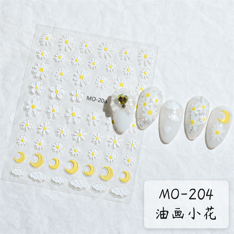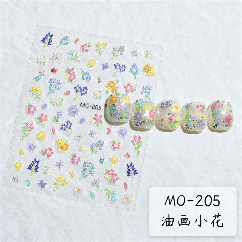 Tiktok 인기있는 봄 유화 작은 꽃 네일 스티커 데이지 컬러 꽃 구호 네일 스티커 작은 신선한