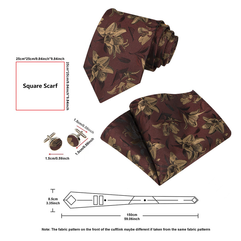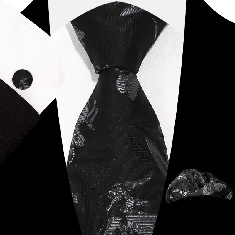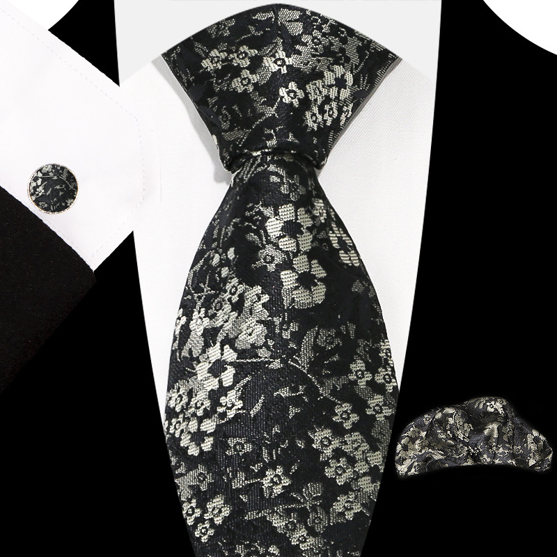 도매 레트로 남성 넥타이 스카프 커프스 세트 비즈니스 정장 자카드 페이즐리 3종 세트 기하학 무늬