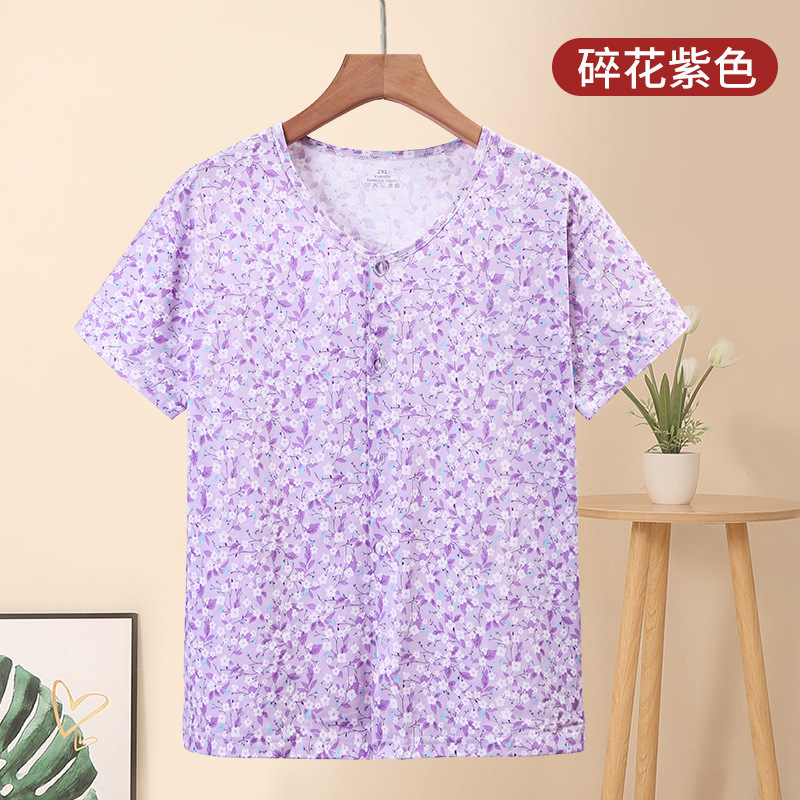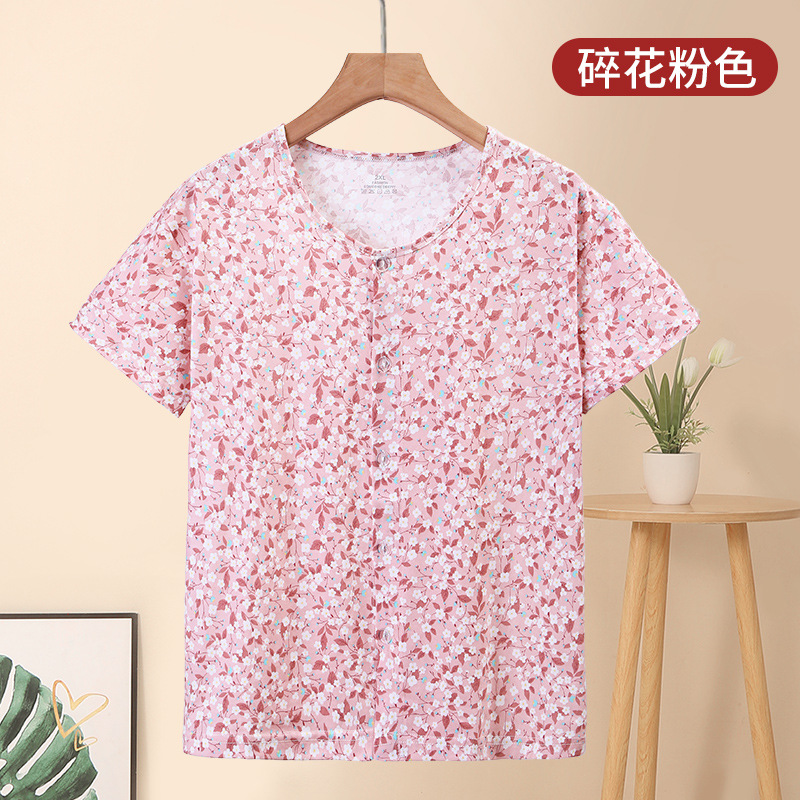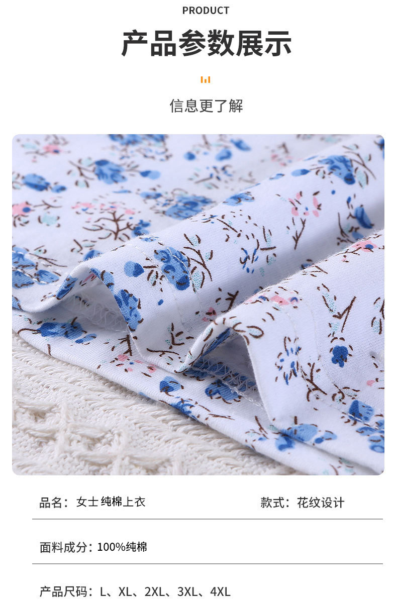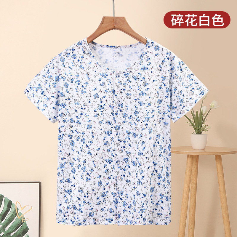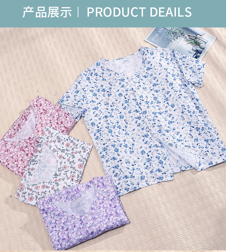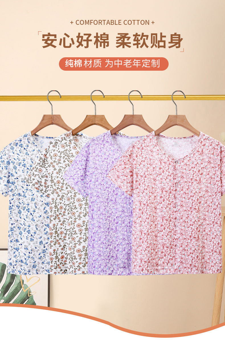 중년 및 노인 어머니 순면 잠옷 여름 할머니 꽃 무늬 가디건 반팔 탑 여성 얇은 겉옷 가정복스토어 가기
